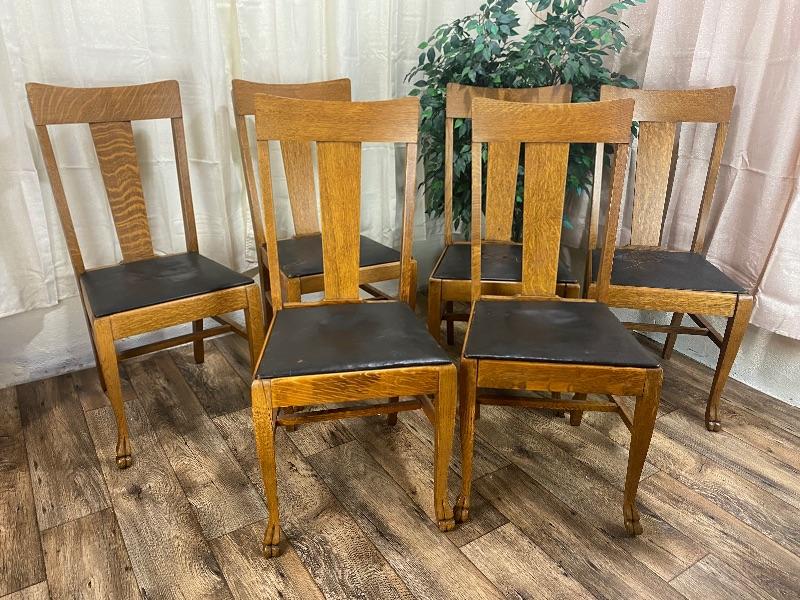 Lot #124 Six Antique Oak Quarter Sawn Dining Chairs