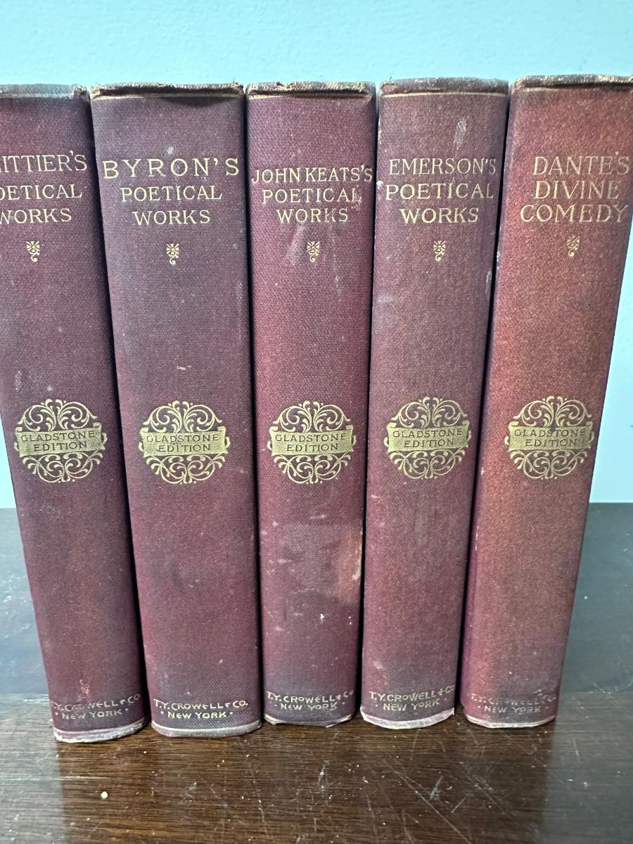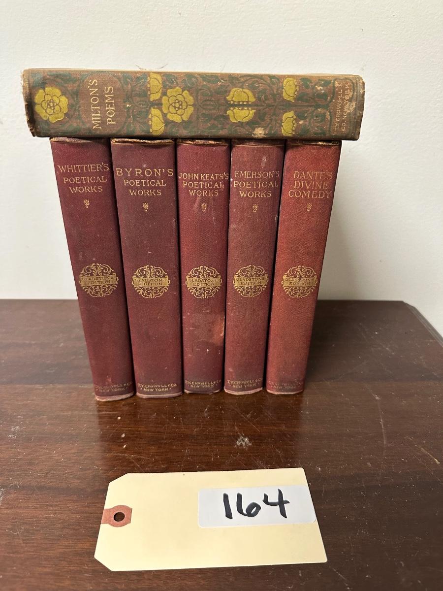 5 GLADSTONE EDITION POEM BOOKS,MILTON'S POEMS 1893,1892 AS PICTURED
