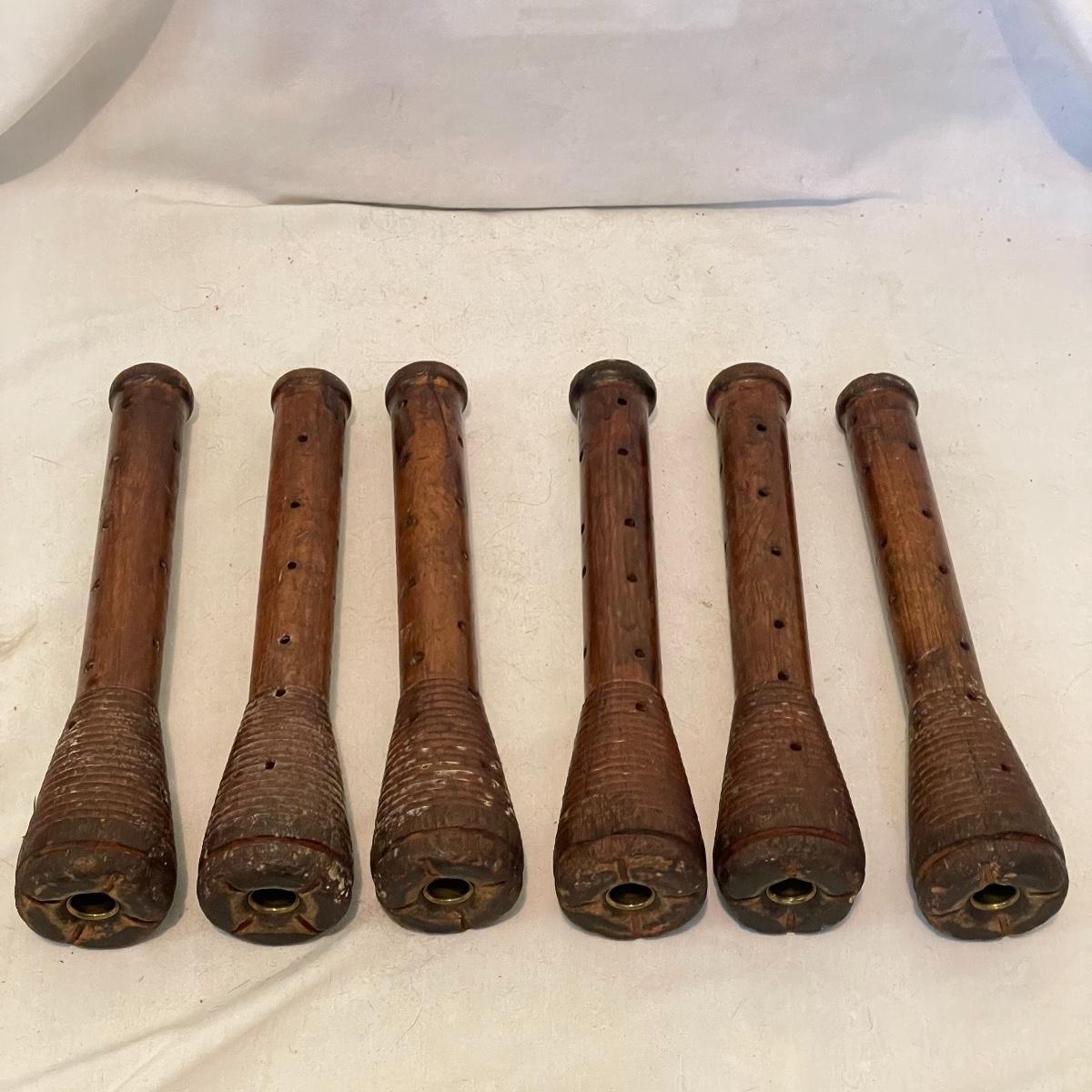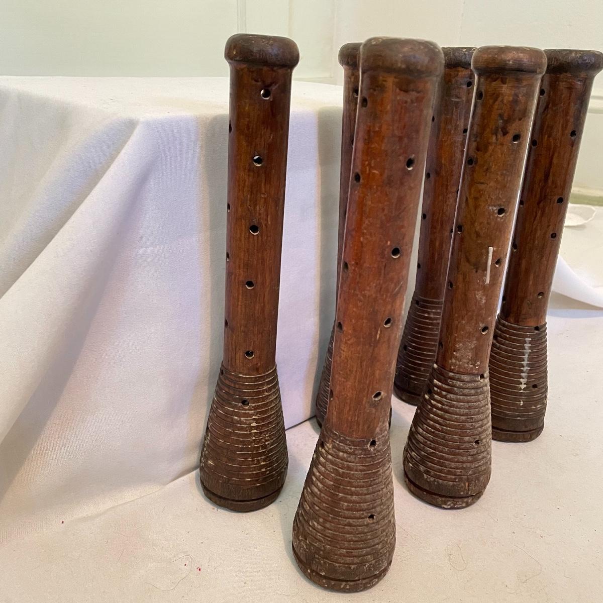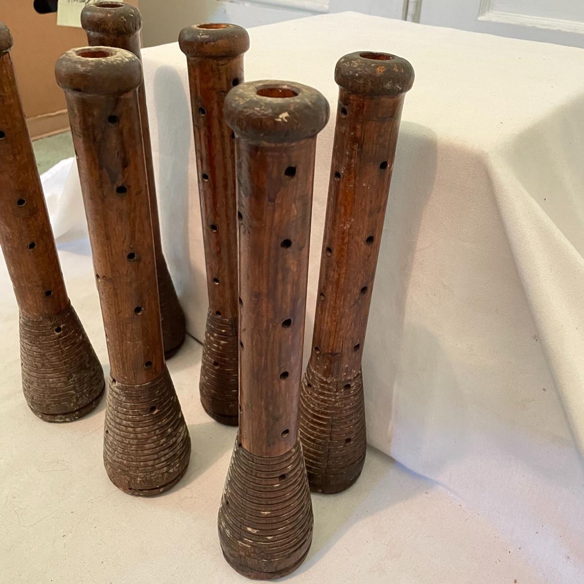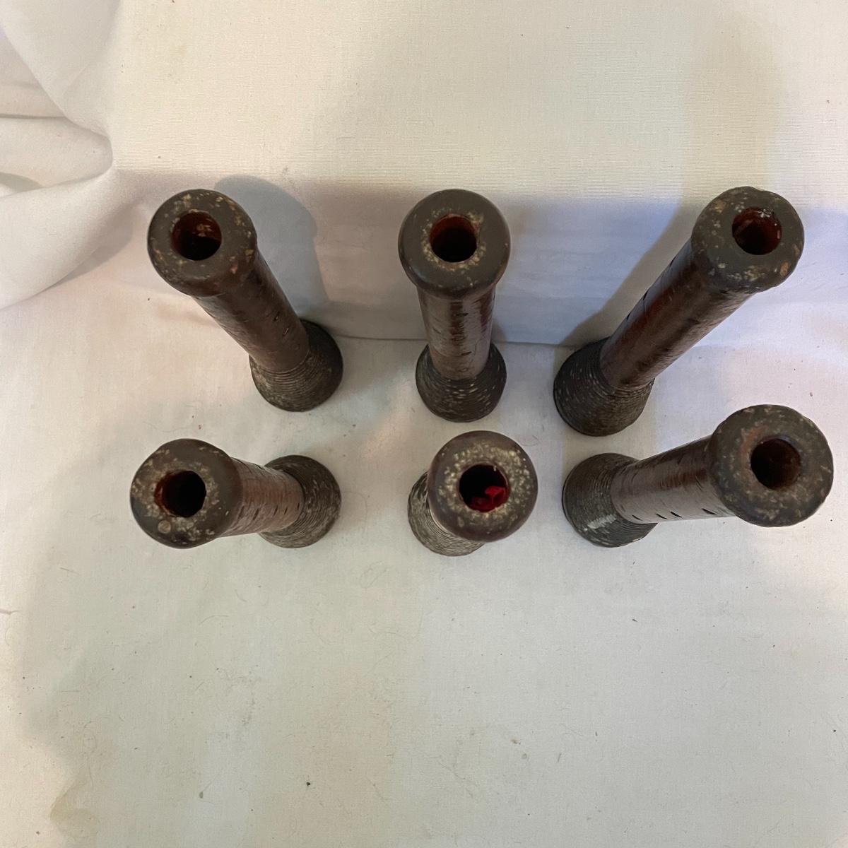 6 Antique Primitive Wooden Loom Spool Yarn Spinning Bobbins (UB4 - SS)