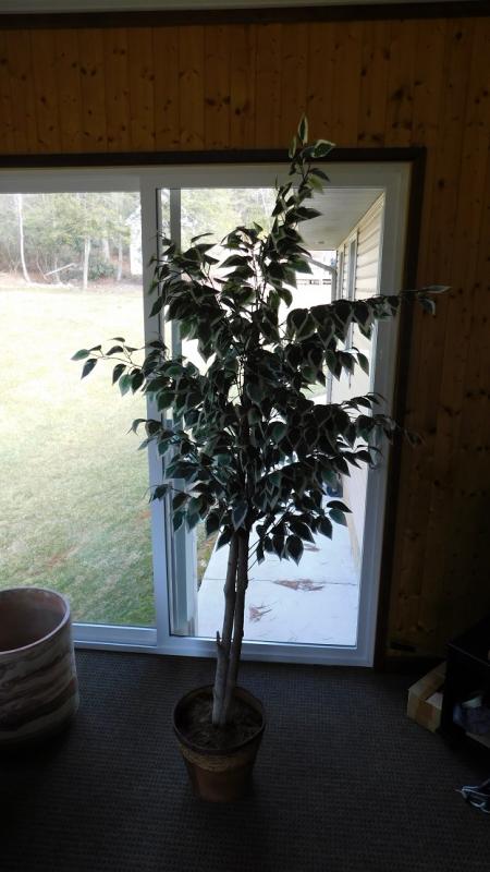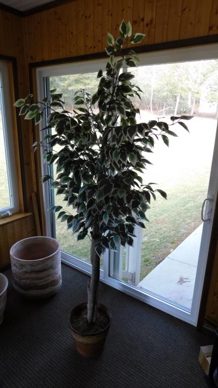 6' Artificial Patio Tree with Planter Basket. In very good condition.