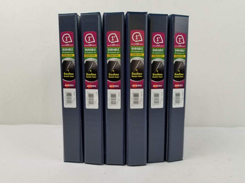 6 Avery 1" DuraHinge 3 Ring Binders, Navy - New