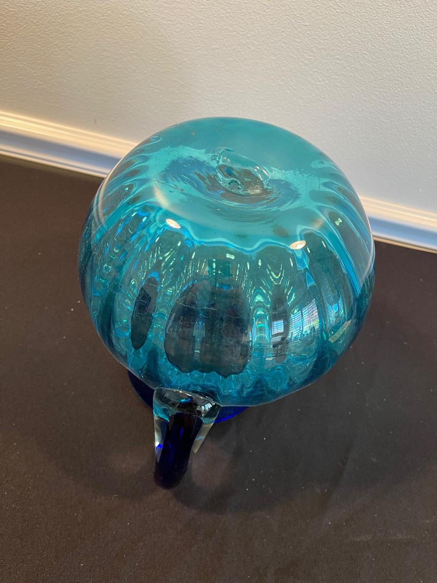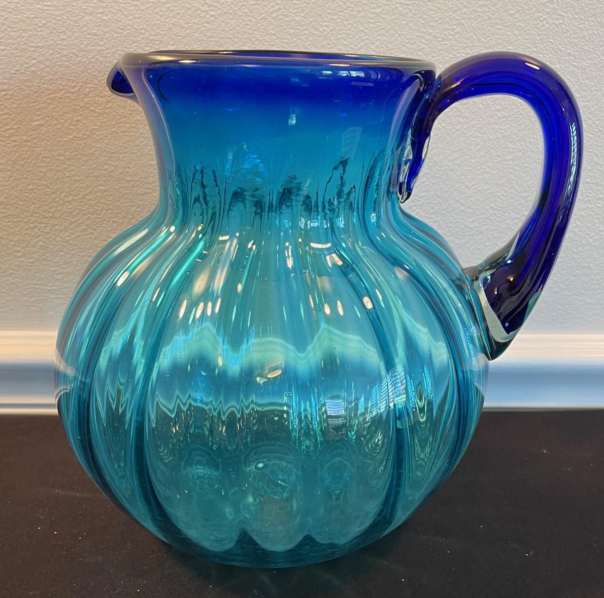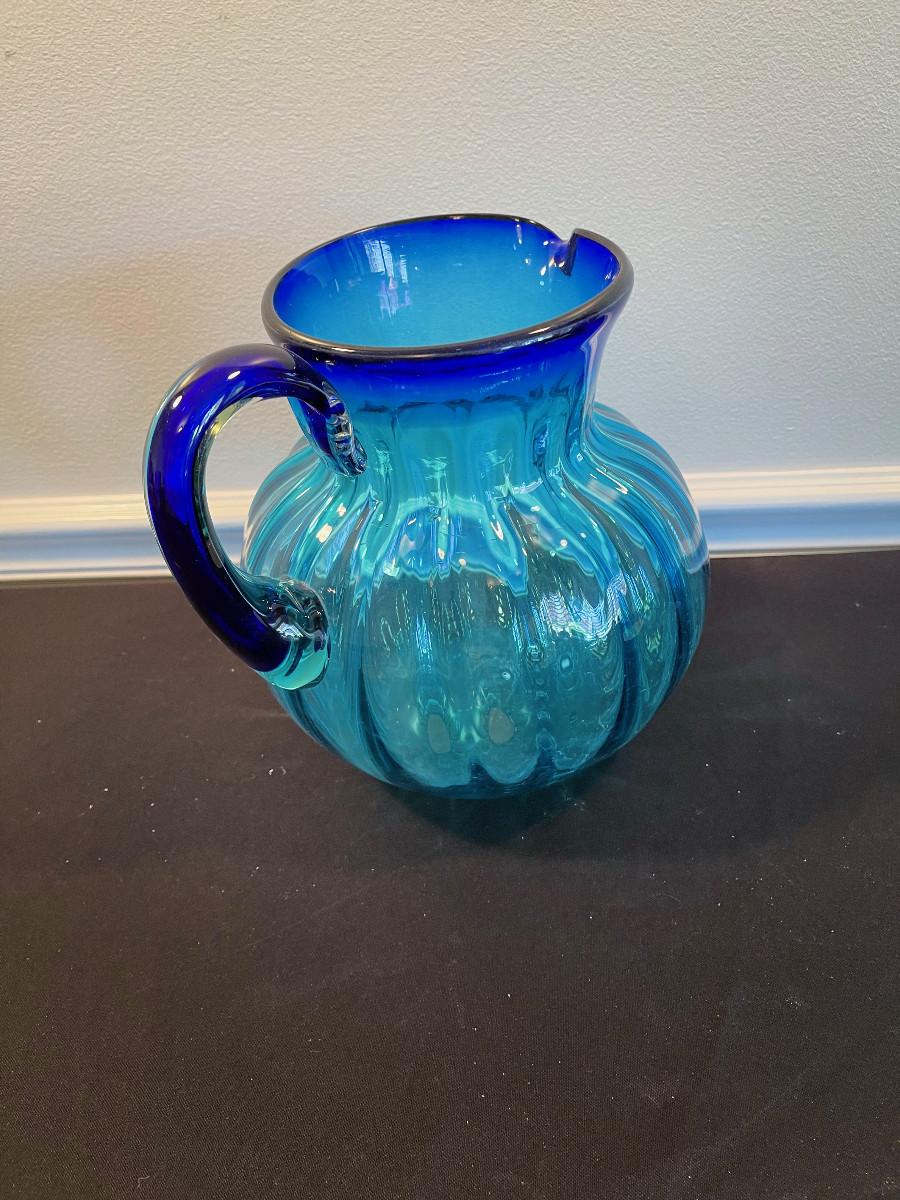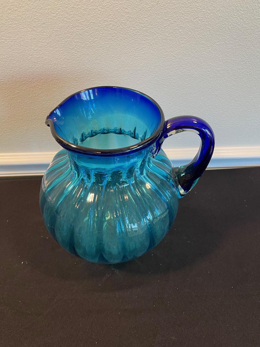 #6 Beautiful Hand Blown Blue Glass Water Pitcher
