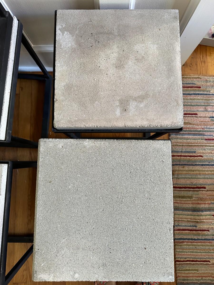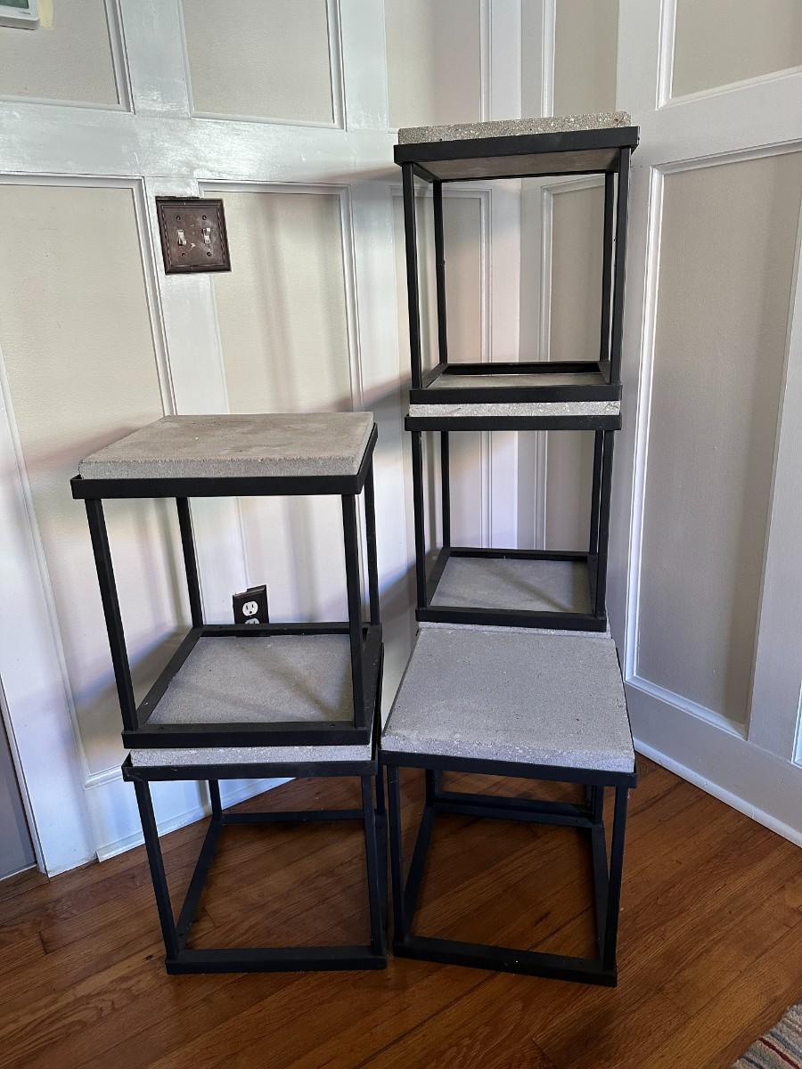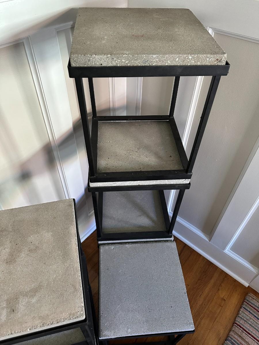 Set of 6. Each measures 14.5"sq x 17" H. Black metal base w/Cement top