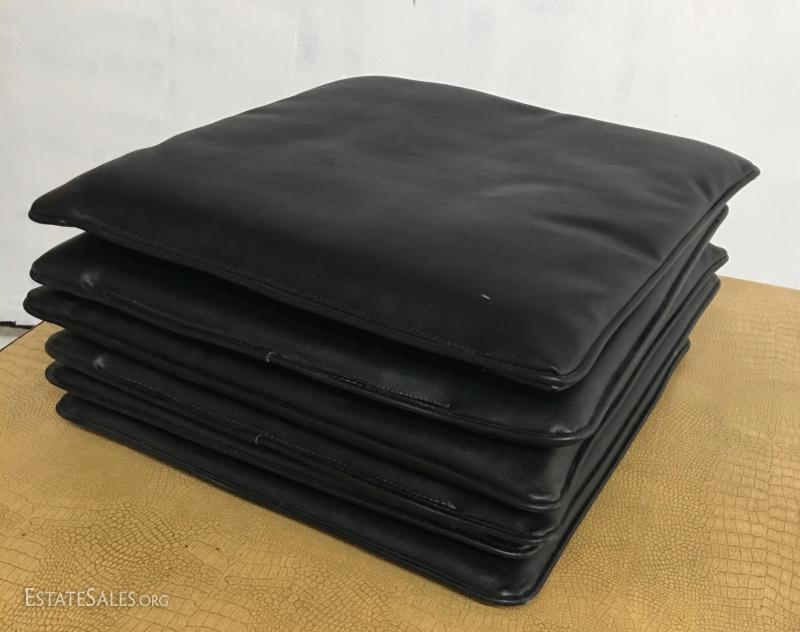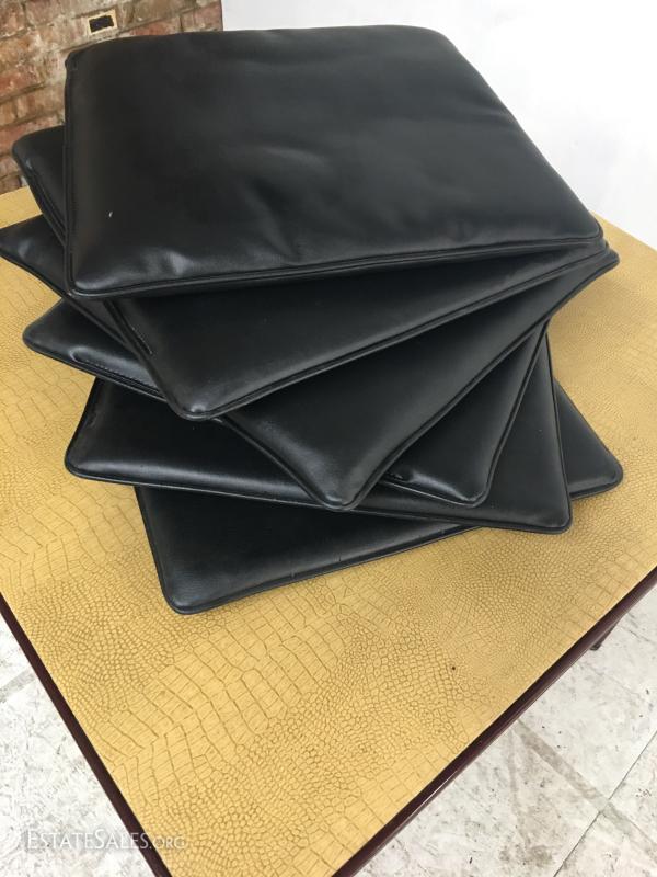 Six cushions measure 16" square. Black Naugahyde perfect for that mid-century chair.