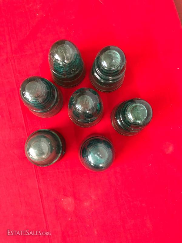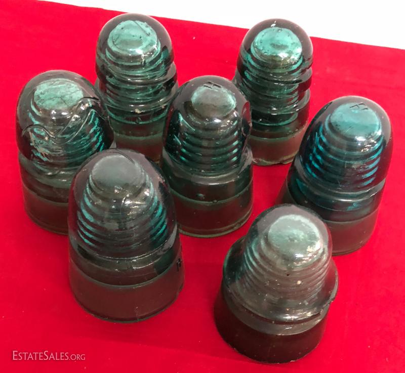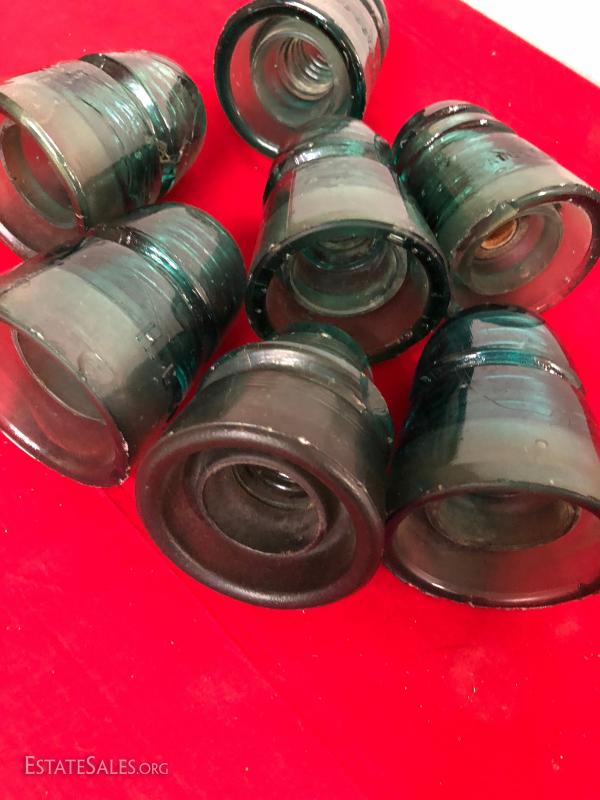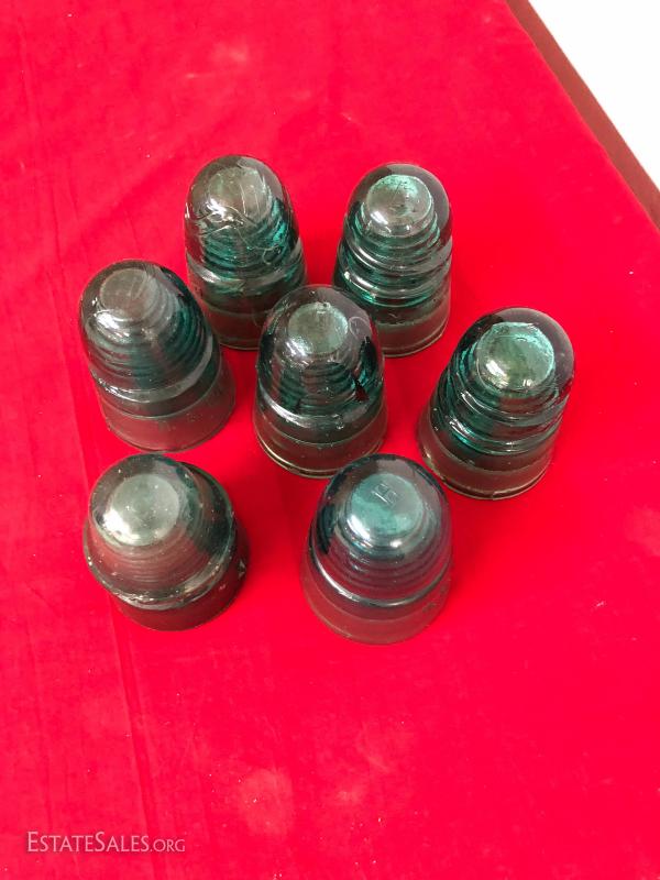 6 Blue Glass Antique Insulators