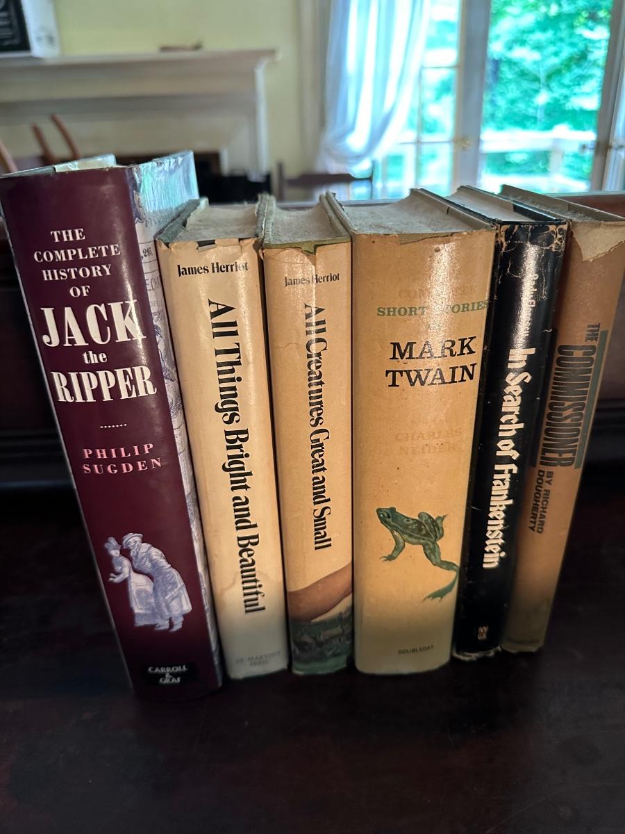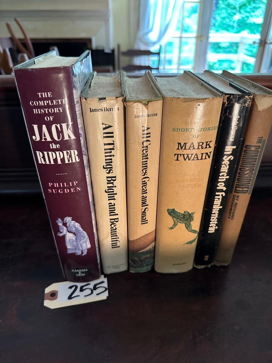 6 BOOKS, JACK THE RIPPER, ALL THINGS BRIGHT AND BEAUTIFUL, ALL CREATURES GREAT AND SMALL, SHORT STORIES MARK TWAIN, IN SEARCH OF FRANKENSTEIN, THE COMMISSIONER
