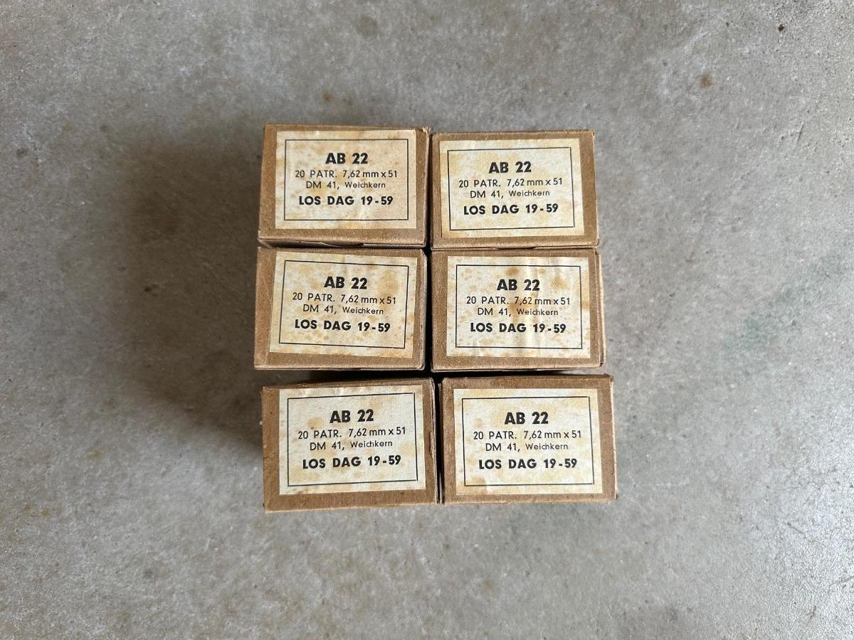 Each box has 20 cartridges, so a total of 120 cartridges. 7.62mm x 51