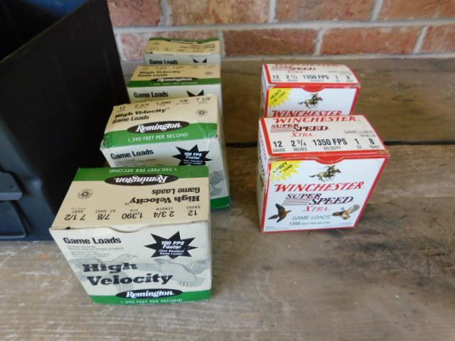 6 Boxes of Game Load 12 ga Shells Remington and Winchester with Ammo Box