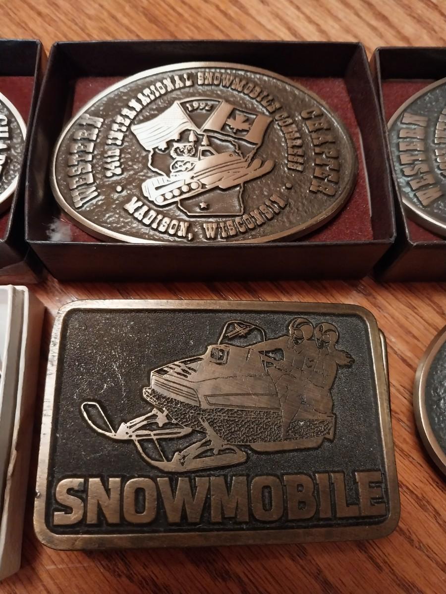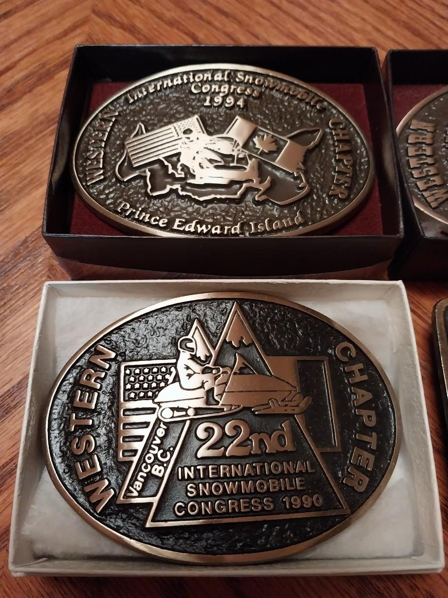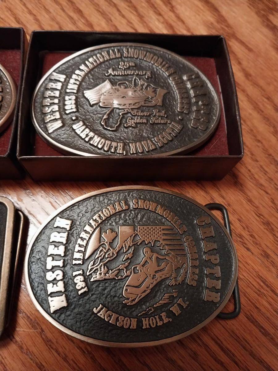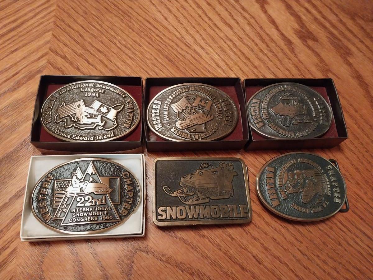 6 BRASS BELT BUCKLES FOR INT. SNOWMOBILE CONGRESS