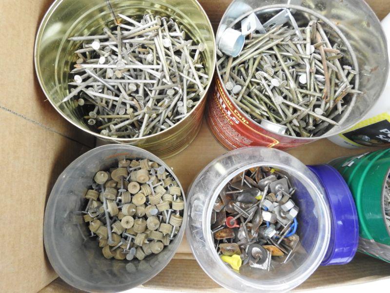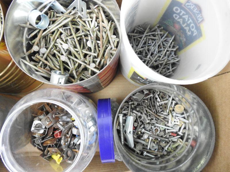 6 Buckets of Various Nails and Screws, 26 Pounds Total