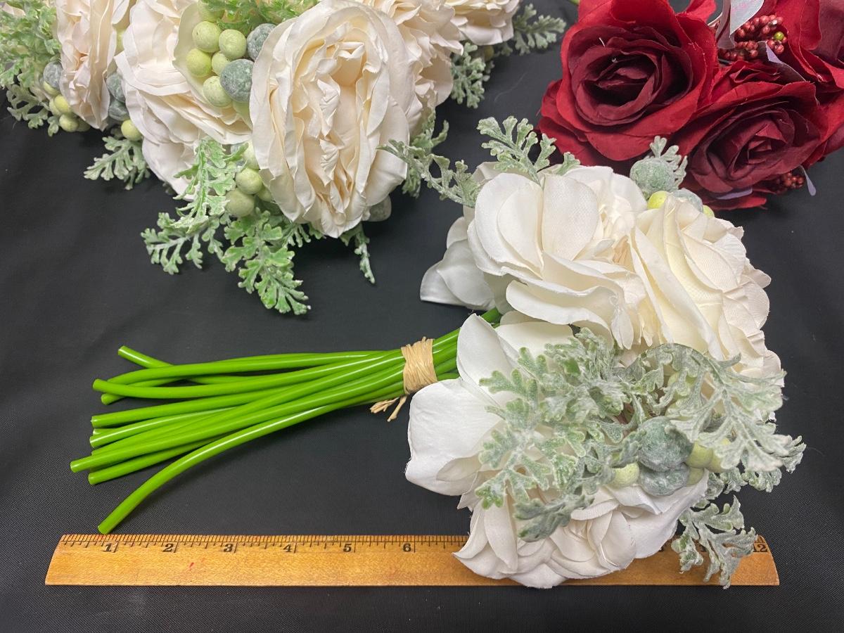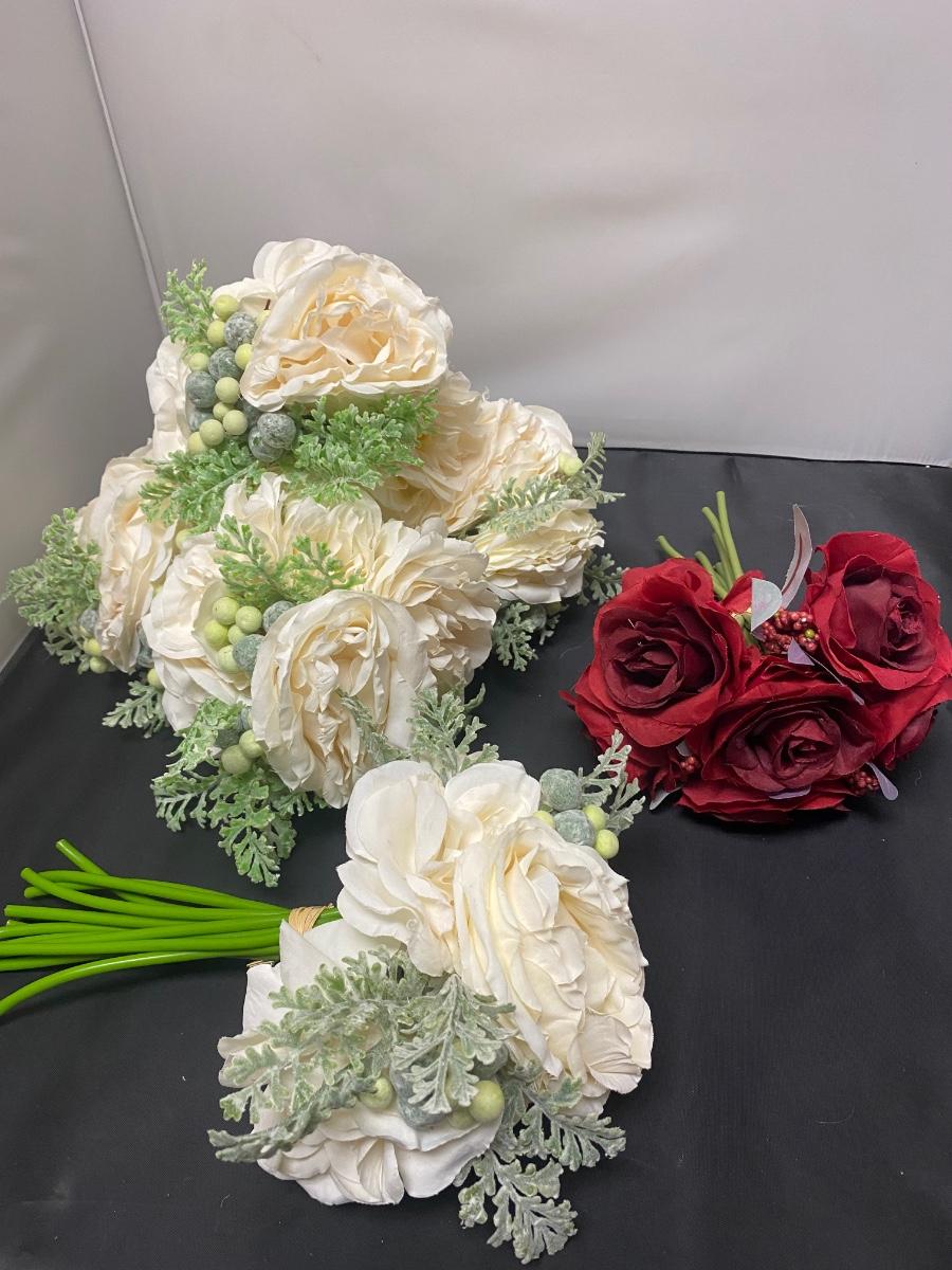 6 Bunches of Faux Fake Artificial Roses Flowers Off White & Red