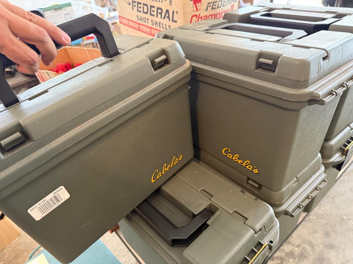 6 Cabella’s hard plastic Green Ammo Boxes - Empty