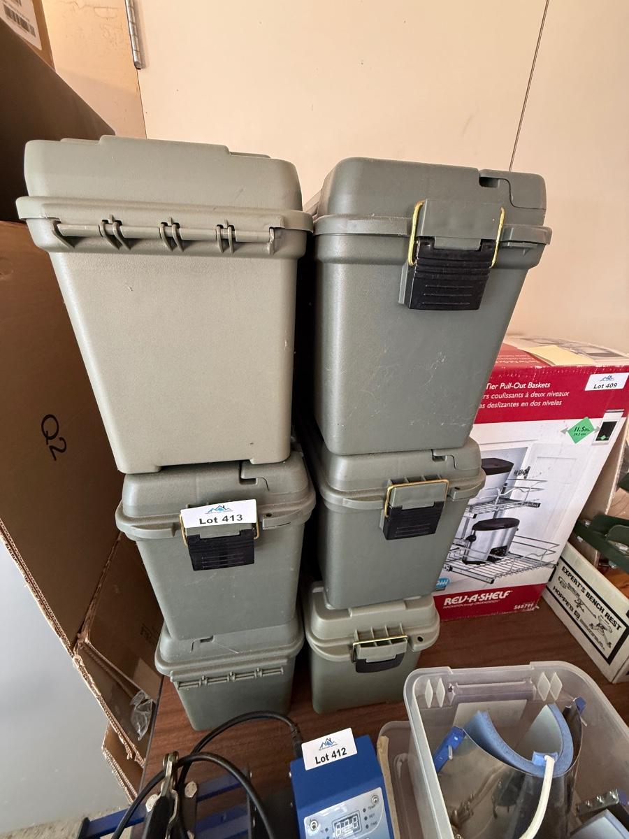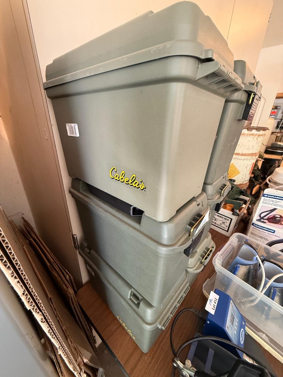 6 Cabella’s hard plastic Green Ammo Boxes - Empty