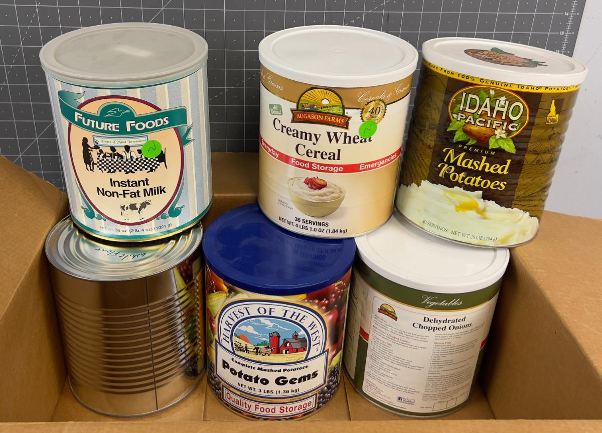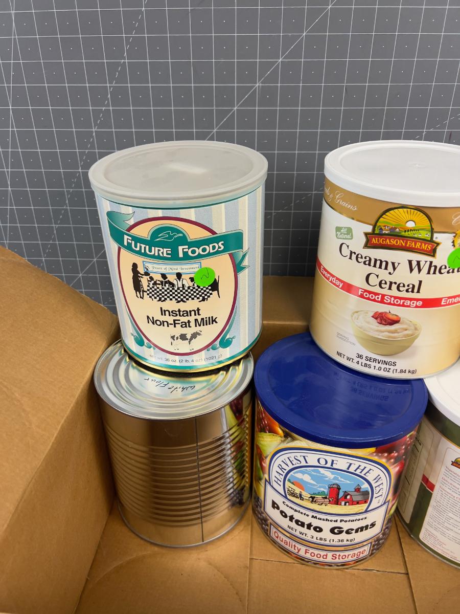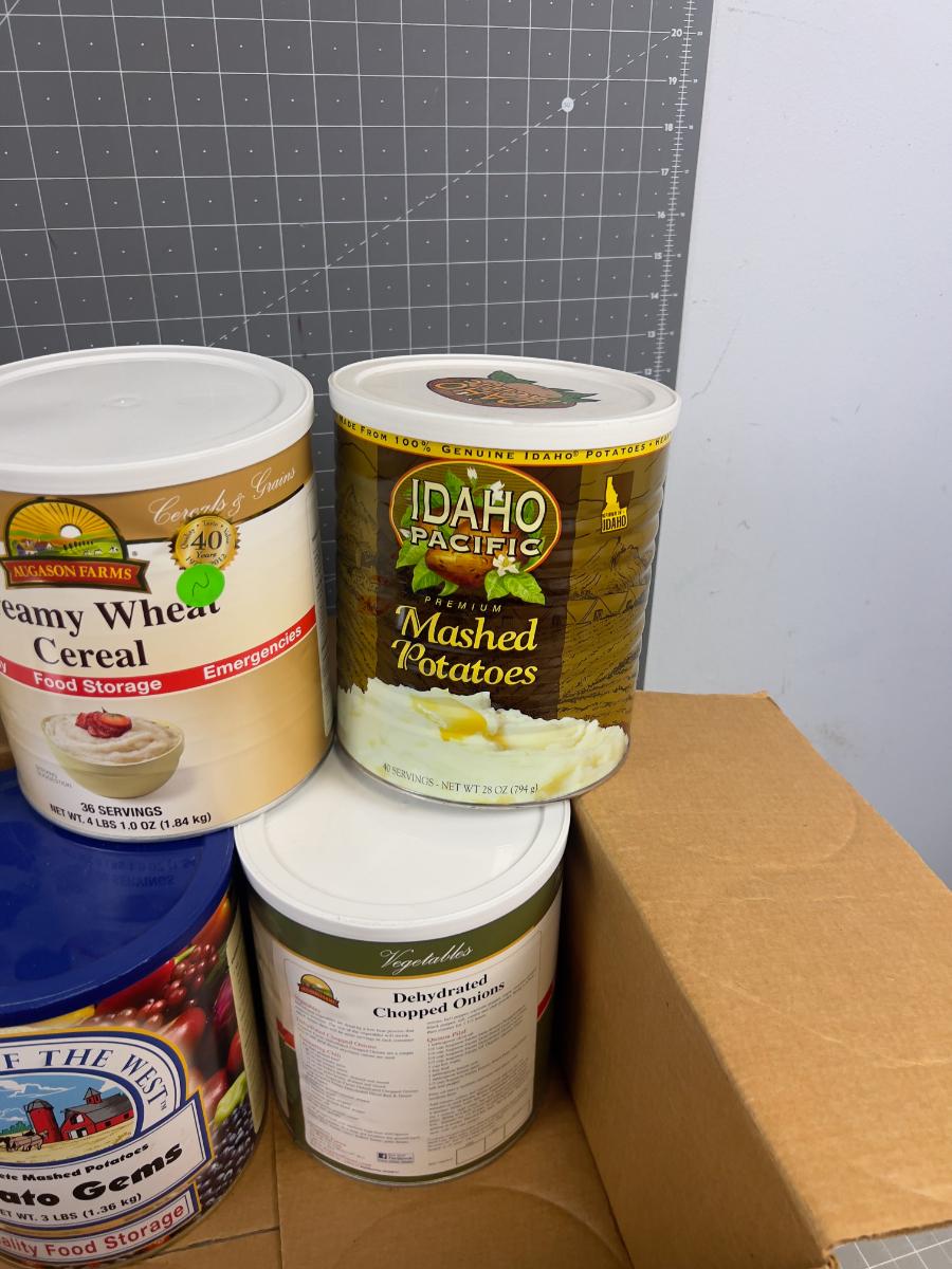 6 Cans of #10 Mixed Lot of Milk, Onion, Flour & Potatoes