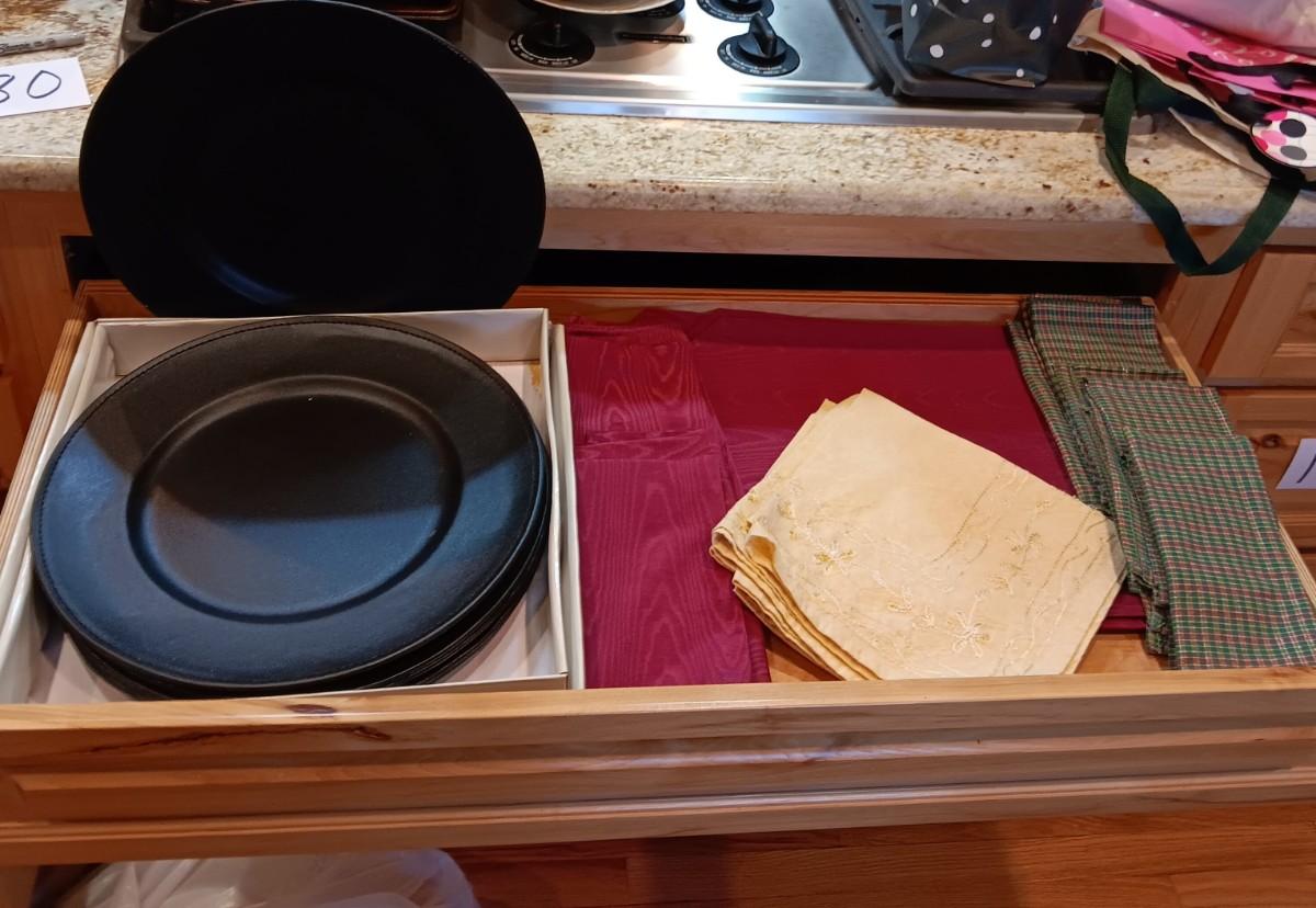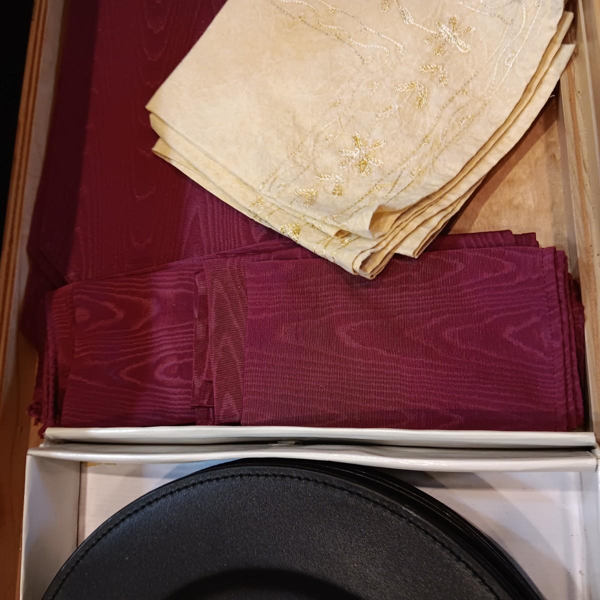 6 CHARGERS, PLACEMATS AND LINEN NAPKINS
