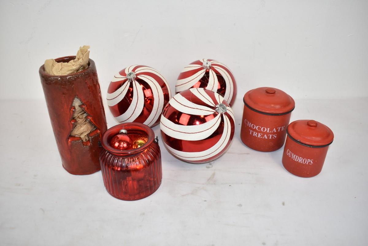 6 Christmas Decor - Big Christmas Ornament Decorations, Tins, etc
