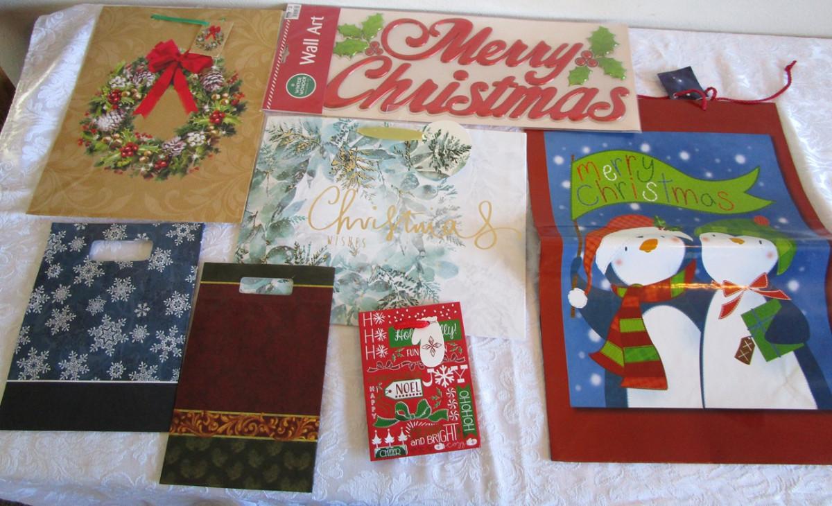 6 Christmas gift bags, 1 Merry Christmas wall art