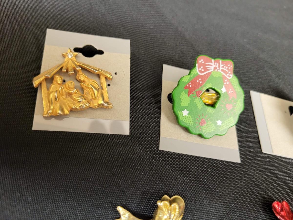 Jewelry:6 Christmas Pins and earrings;