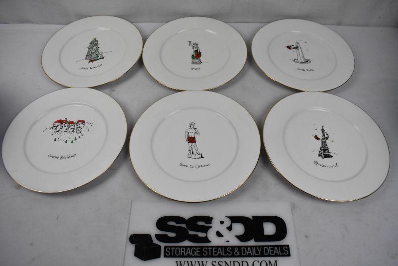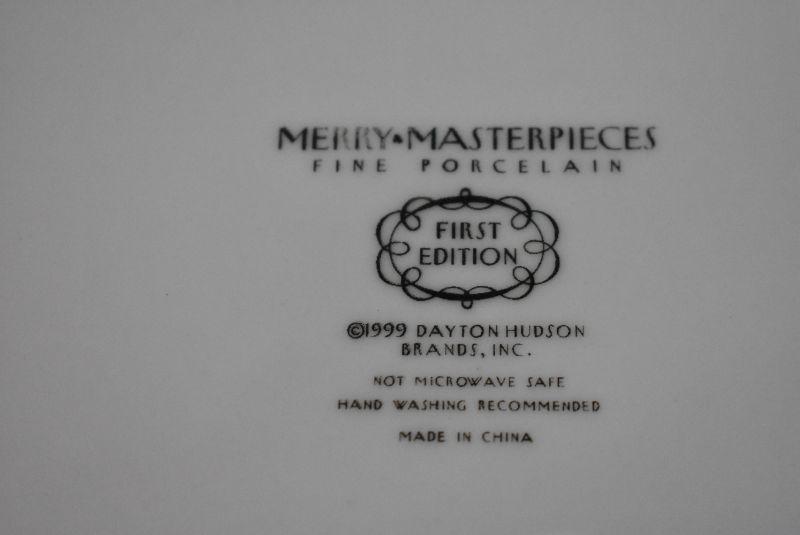 6 Christmas Plates, 10.5" Merry Masterpieces Fine Porcelain 1999