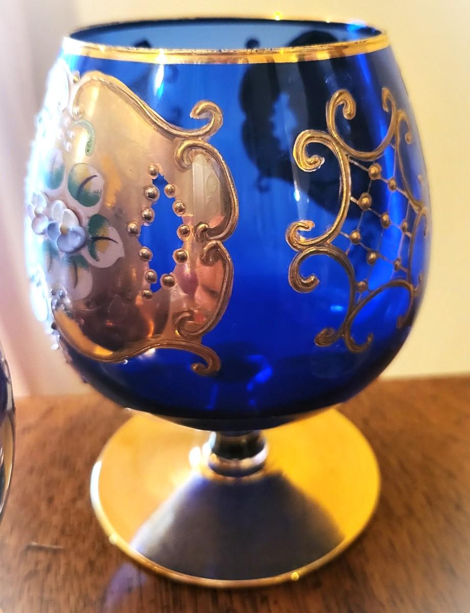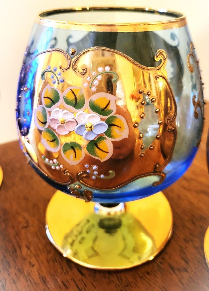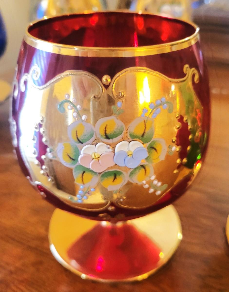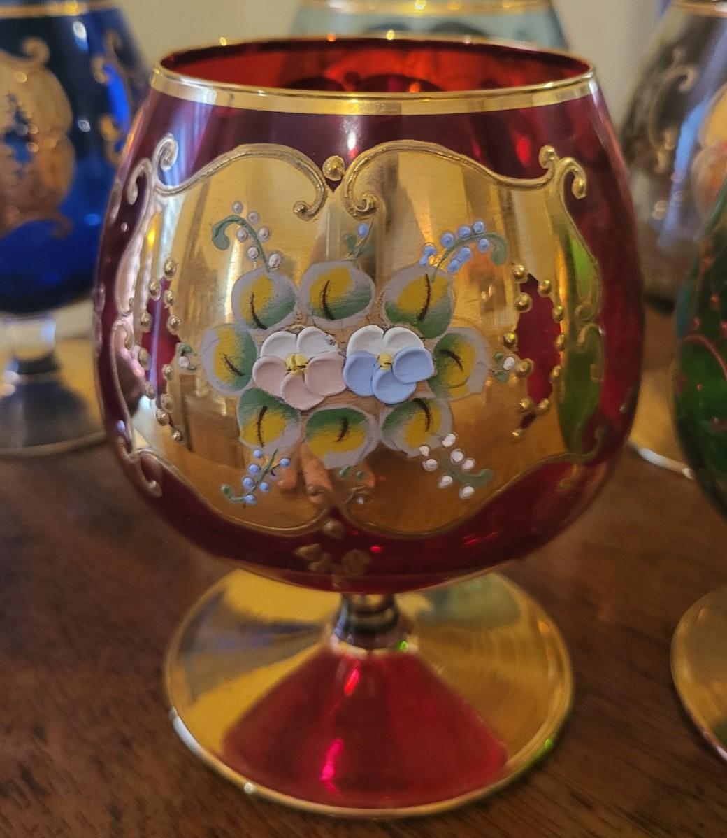 6 Circa 1960s Vintage Bohemian Glass Brandy Snifters, Hand Painted