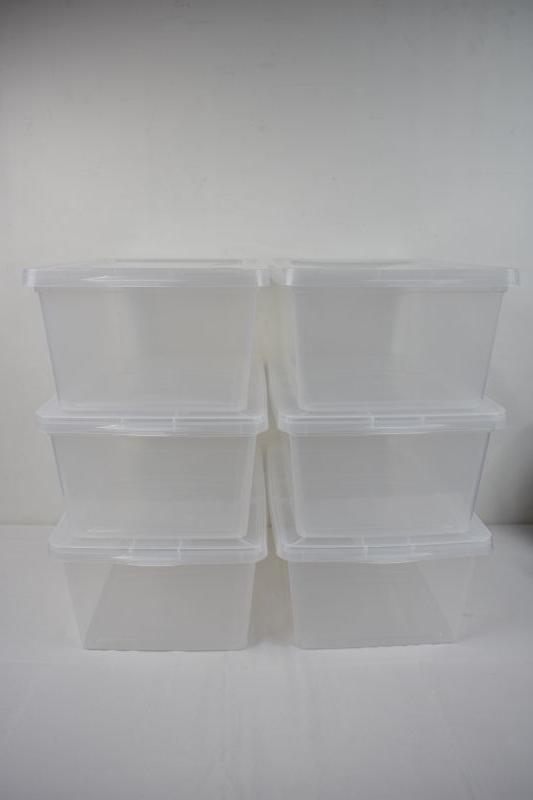 6 Clear Storage Bins with Lids, Mainstays 17 qt - New