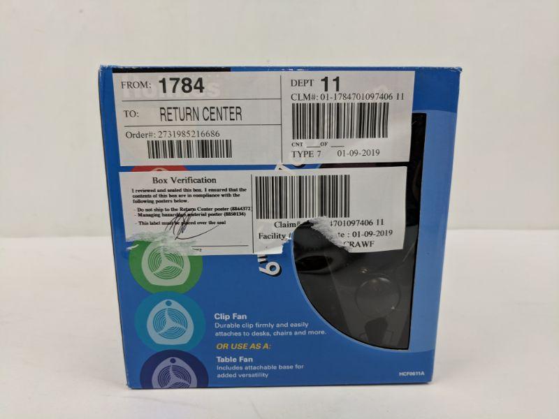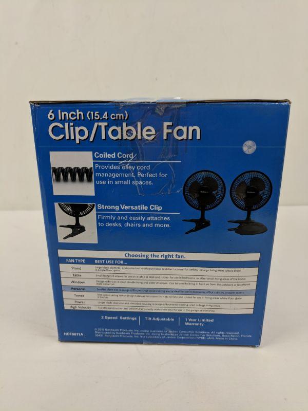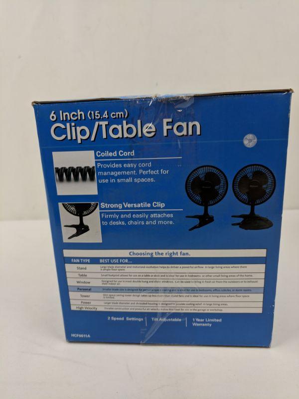 6" Clip/Table Fan, Coiled Cord, Black, Use as Clip or Table Fan - New