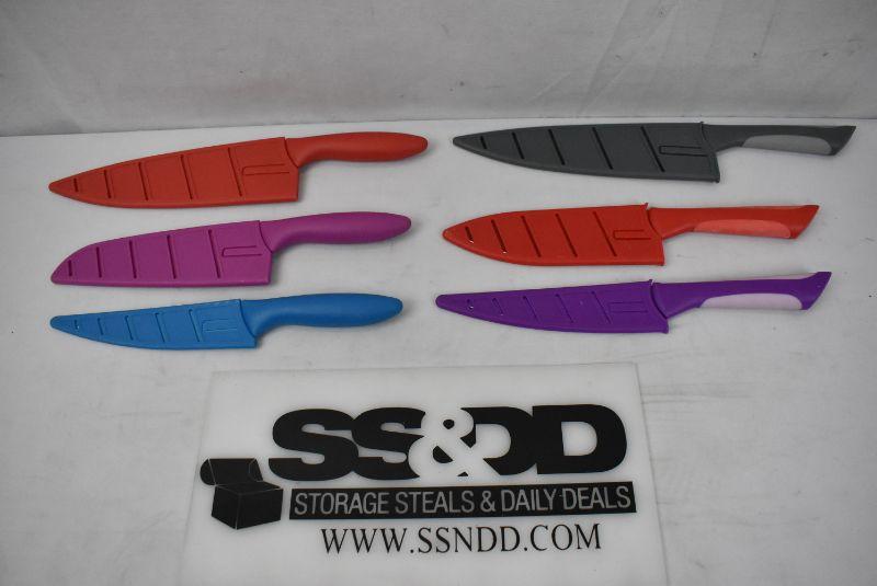 6 Colorful Kitchen Knives with Plastic Handles/Covers
