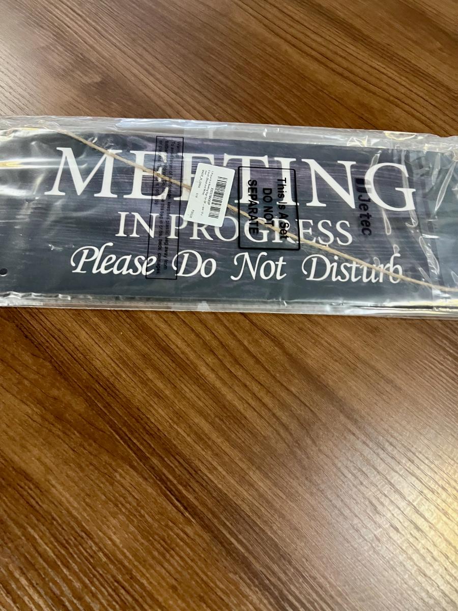 Very Good Condition. Measures 95 x 42 x 29" Tall Comes with a Meeting Sign "In Progress" .