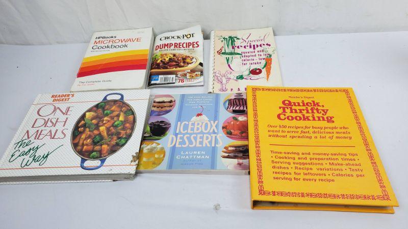 6 Cookbook Lot: Microwave/Crock-Pot/One Dish/Icebox Desserts/Quick Thrifty Cooking/Special Recipes