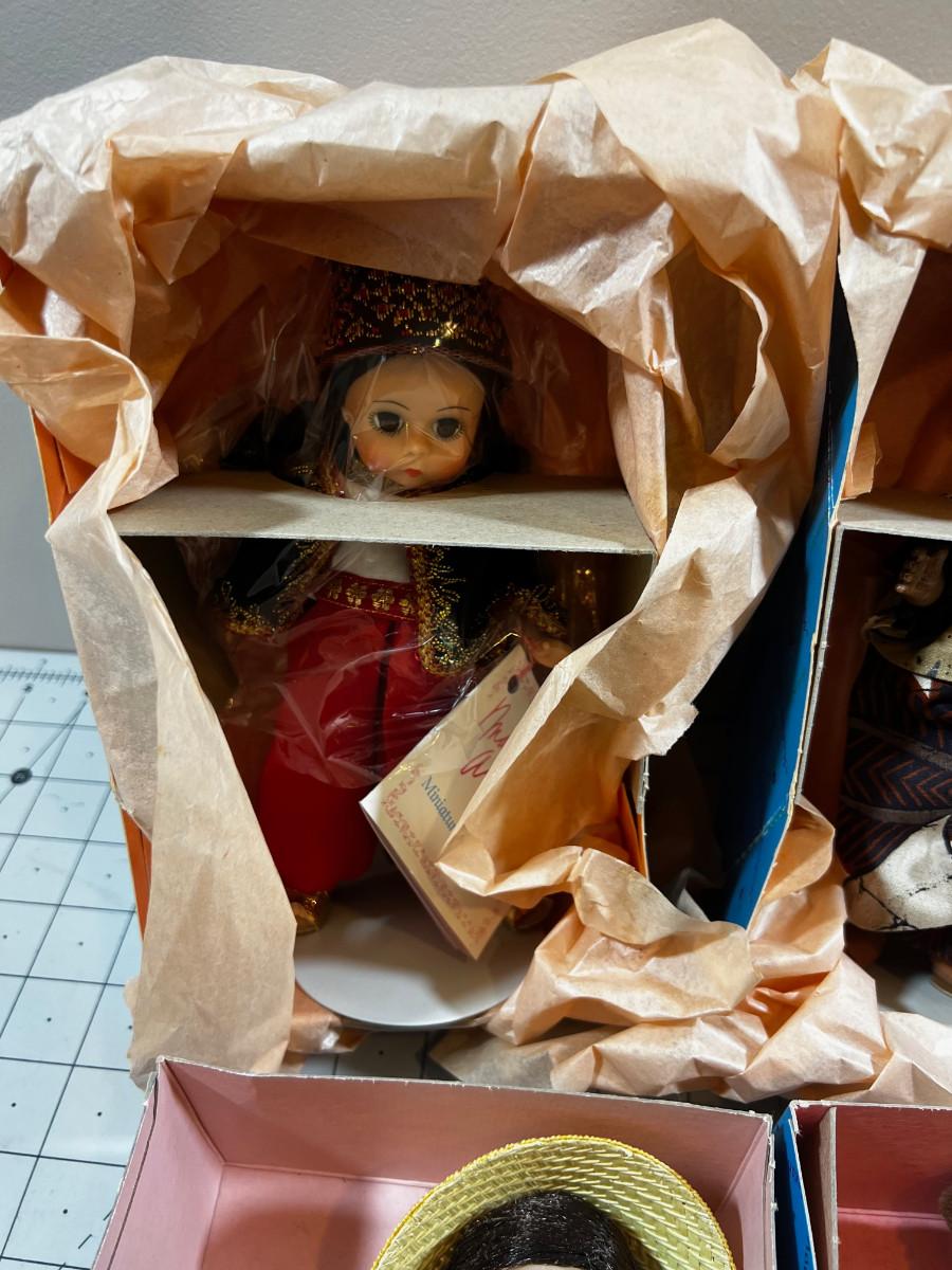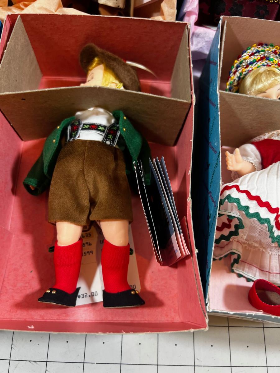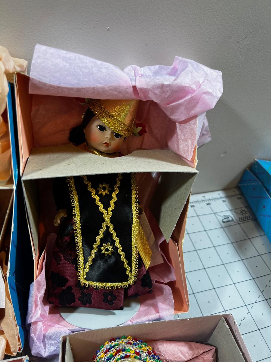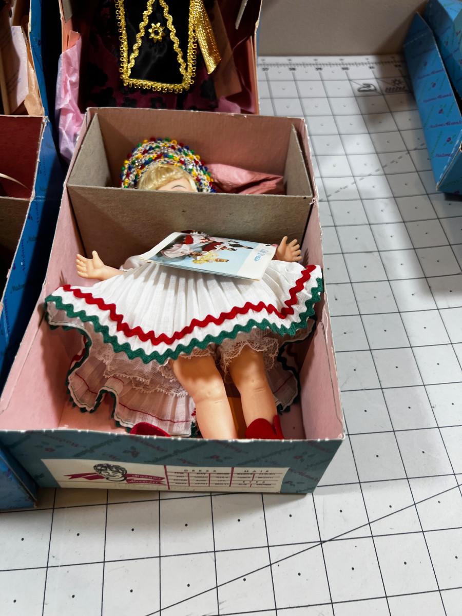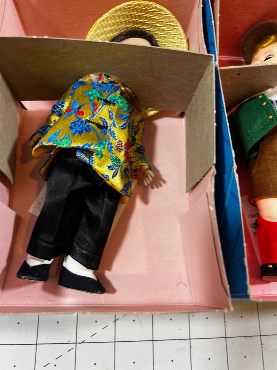 7" Tall Country representing Dolls. Like New in the Original Box Collector Condition.