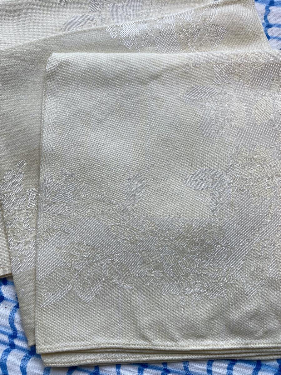 Six cream napkins with floral boarder 14 X 14