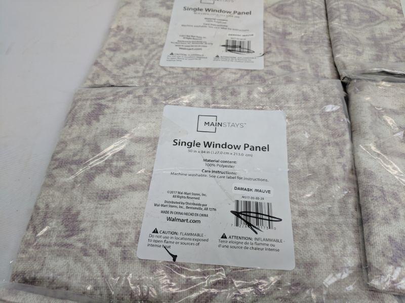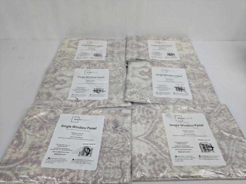 6 Damask Mauve Single Window Panels, 50x84 in, Mainstays, Qty 6