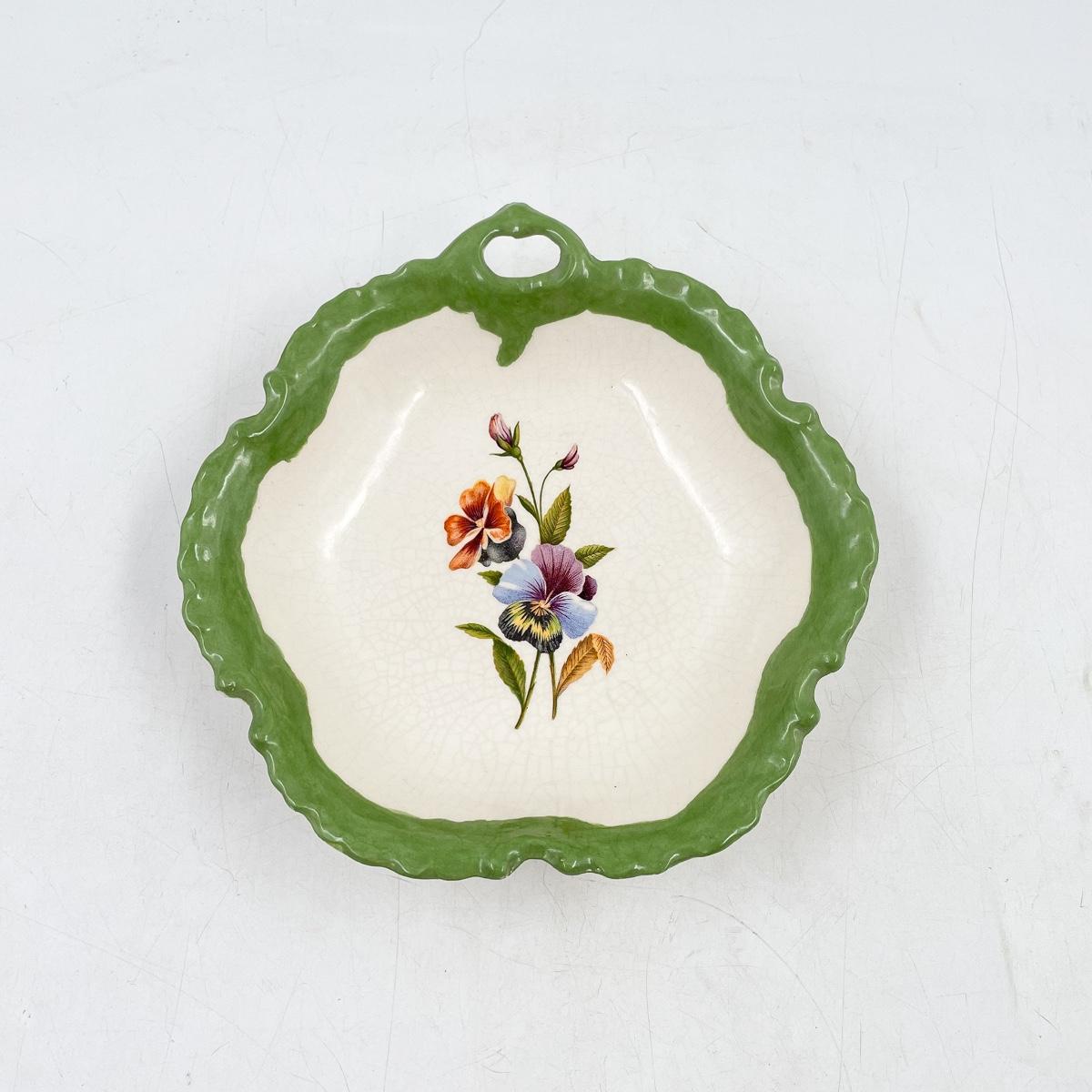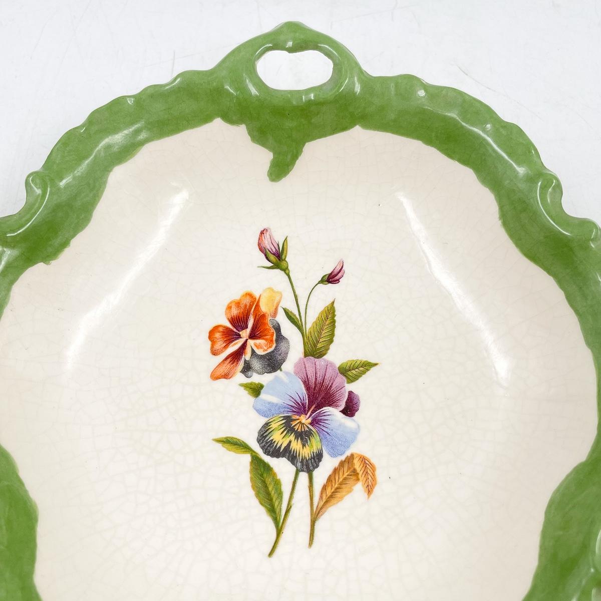 6” DECORATIVE PANSY PLATE W/ GREEN TRIM