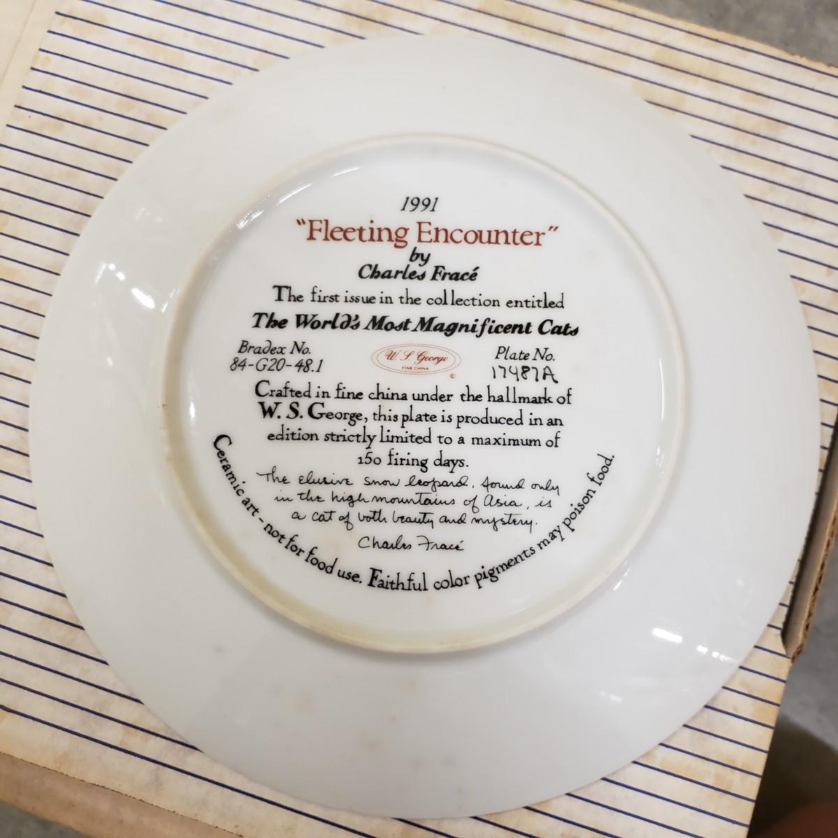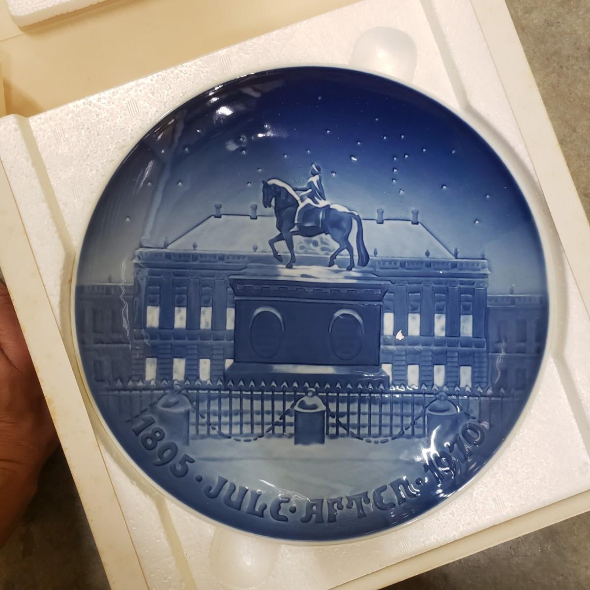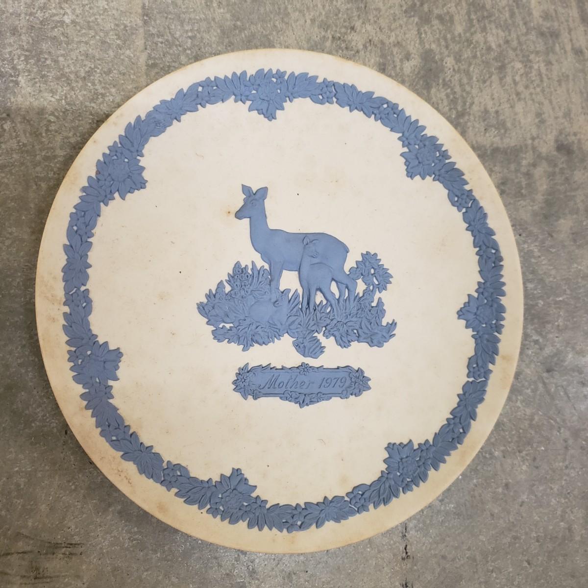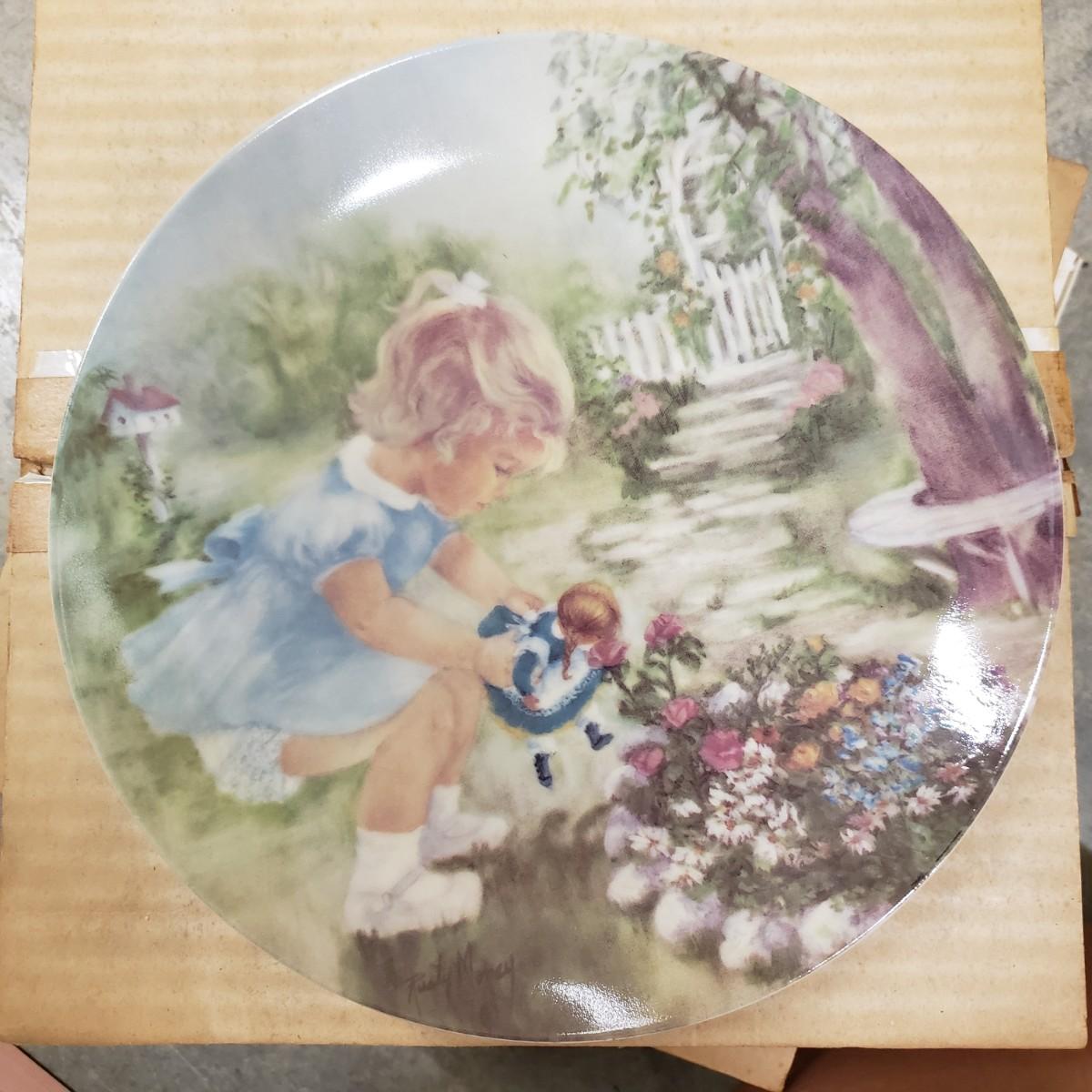 Bing and Grondahl Porcelin "Amalienborg" is 9". "Butterfly" is incased in a wooden frame that measures 10". Wedgewood's "Mother" from 1979 is 6.5". WS George's "Fleeting Encounter" from 1991 measures 8.5". The last are identical plates signed by Rusty Money called, "Stop and Smell the Roses" and measures 8.5". All plates appear to be in good condition.