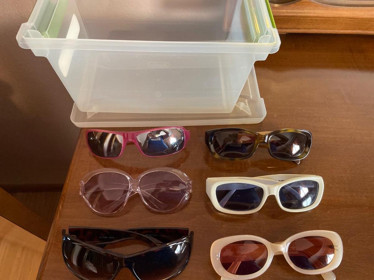 6 different sunglasses in tote