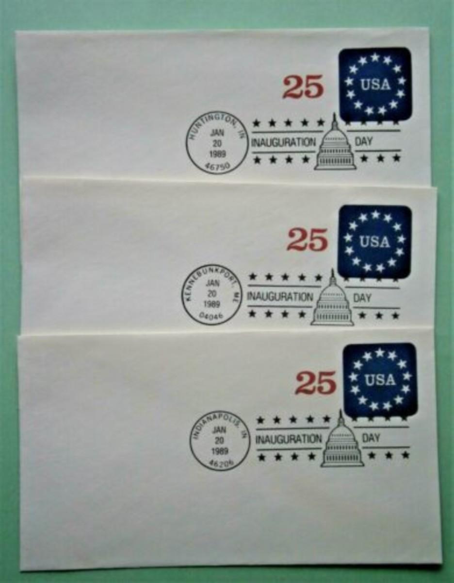 (6) Different US 1989 Inauguration Day Covers, Houston, Greenwich, Milton, Indianapolis, Kennebunkport, & Huntington, 6 1/2 x 3 5/8 in.