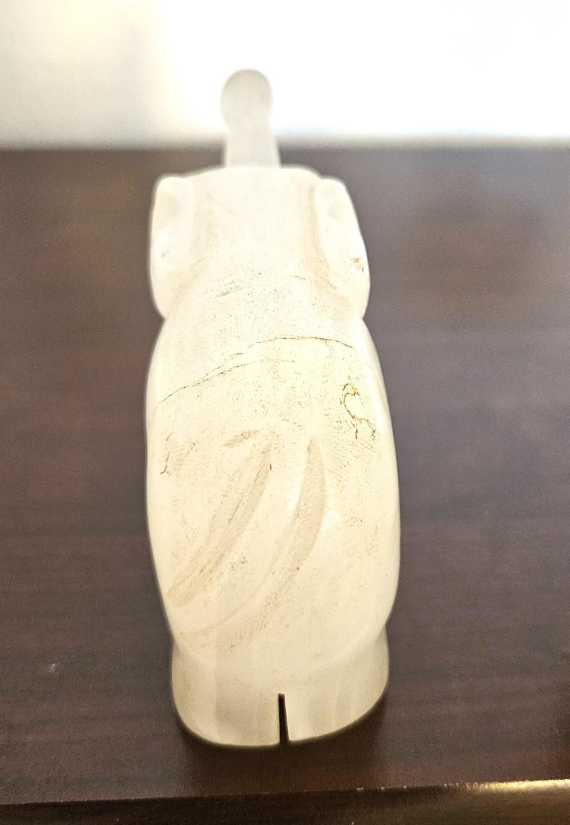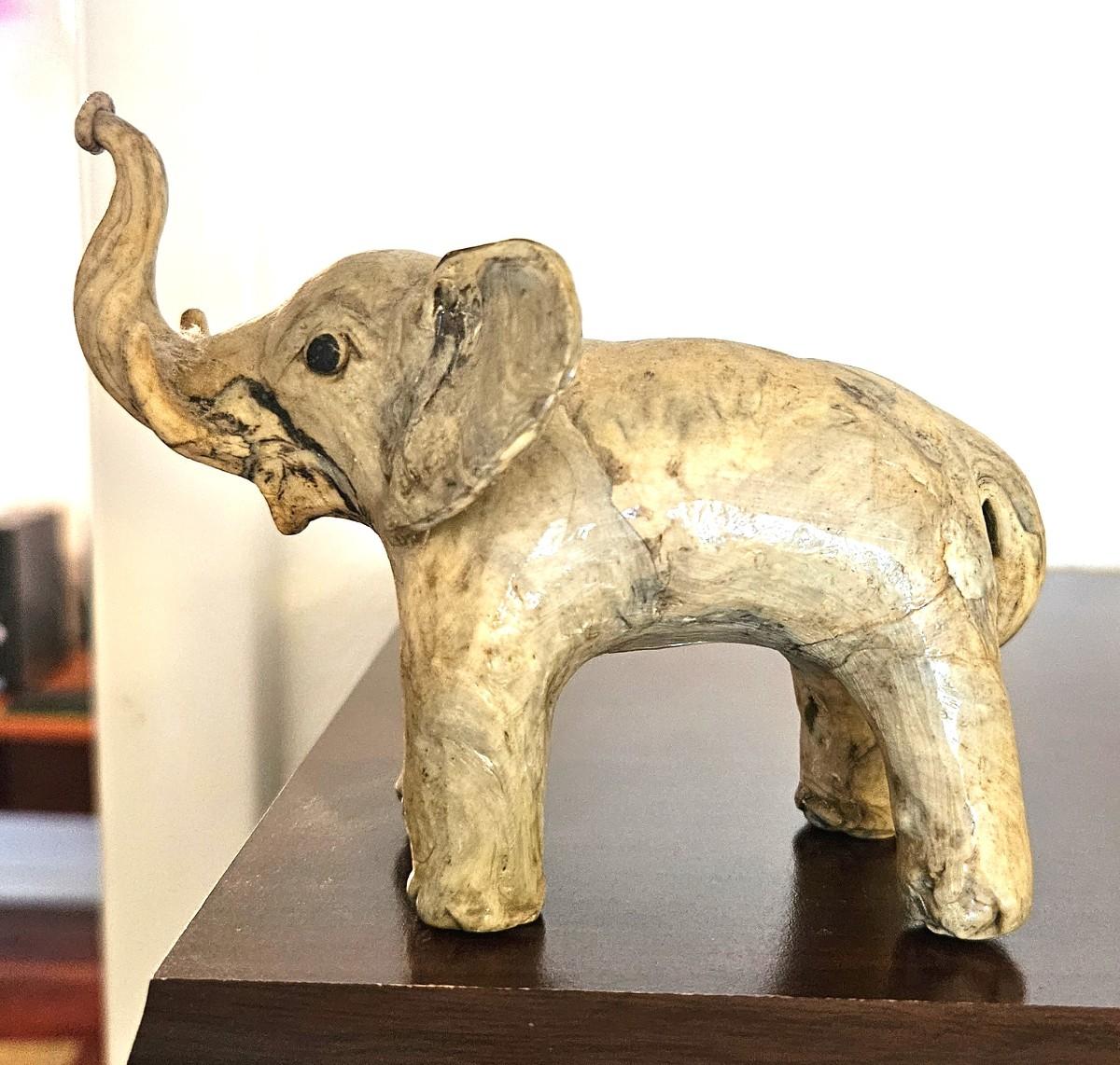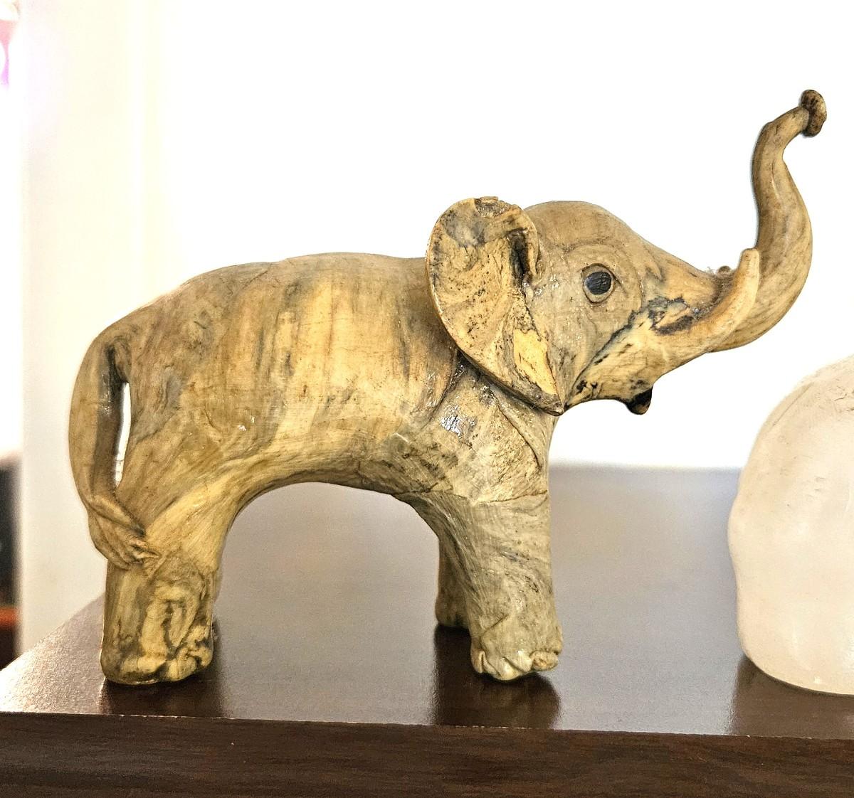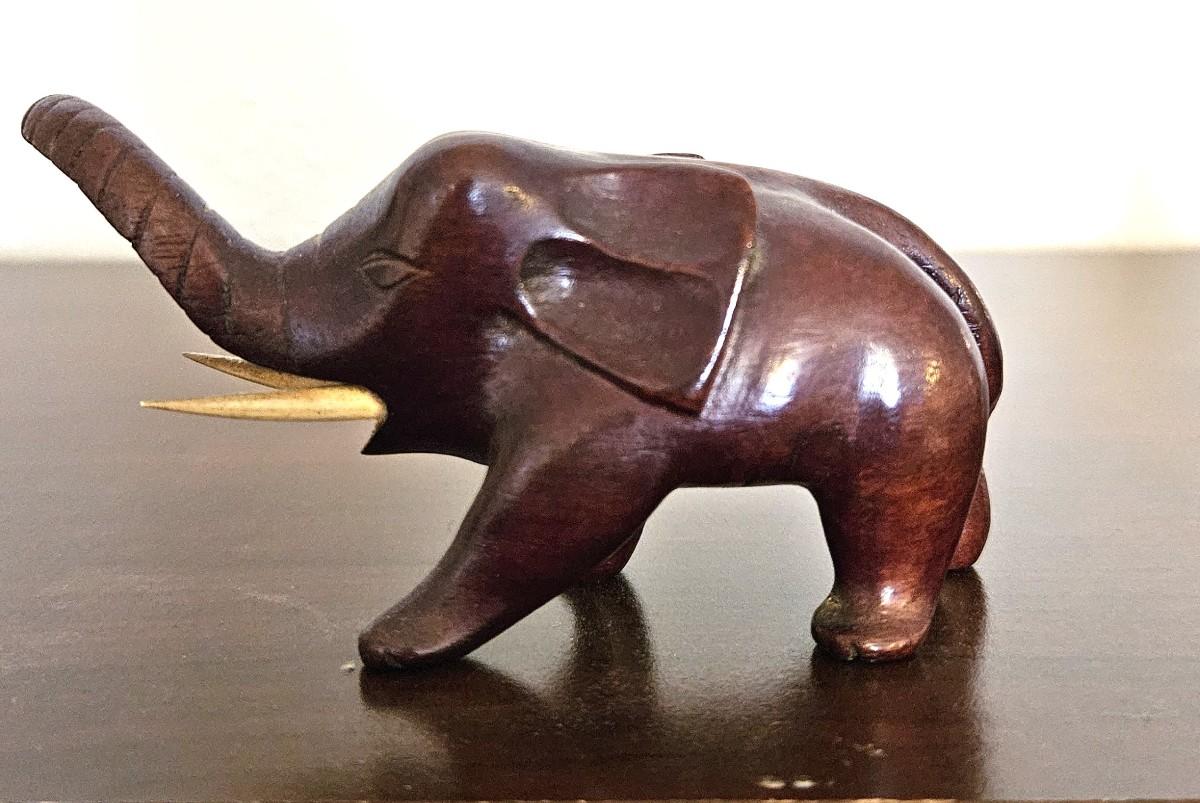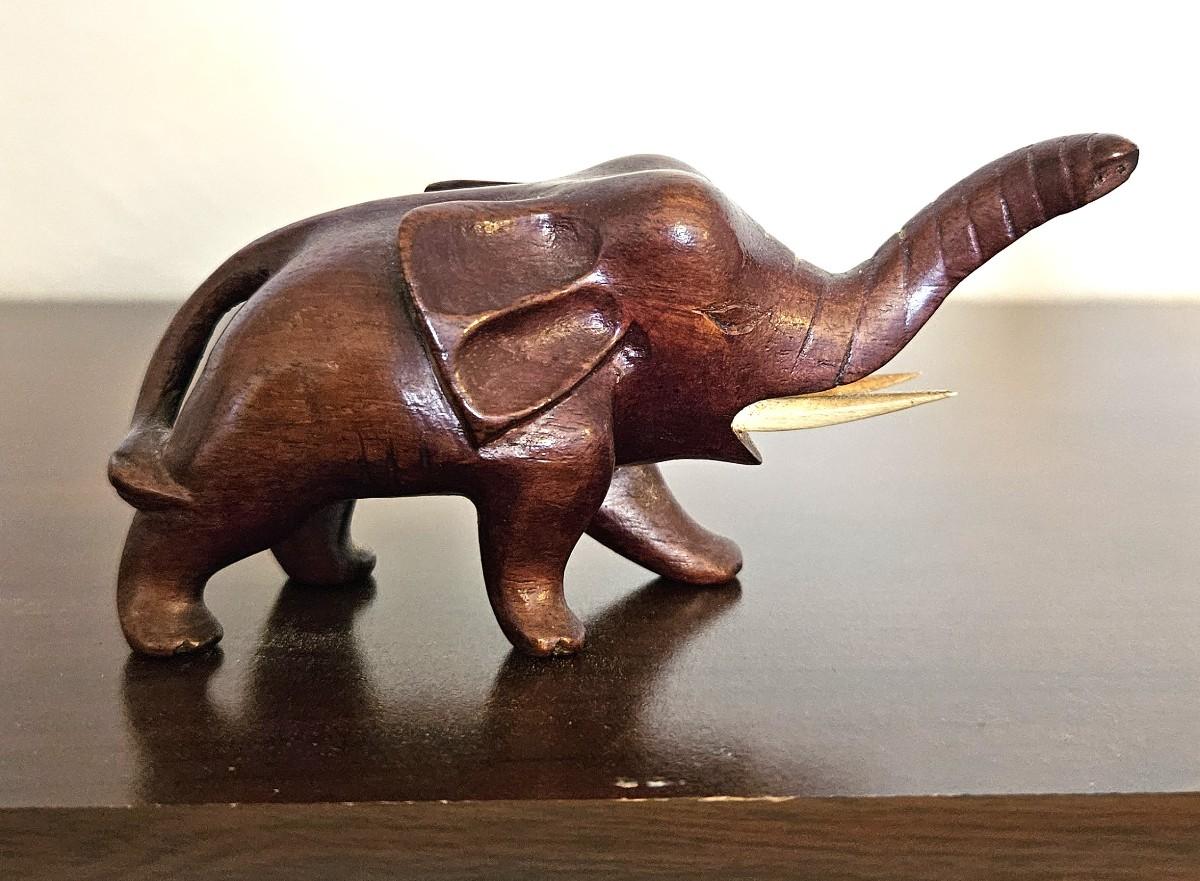 4} Vintage Hand Carved Wooden Elephant with Ivory Tusks