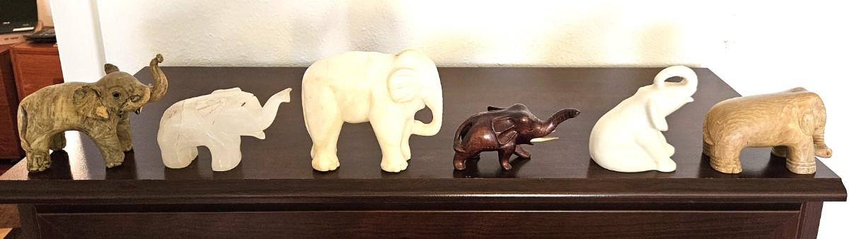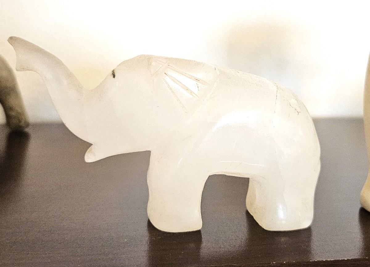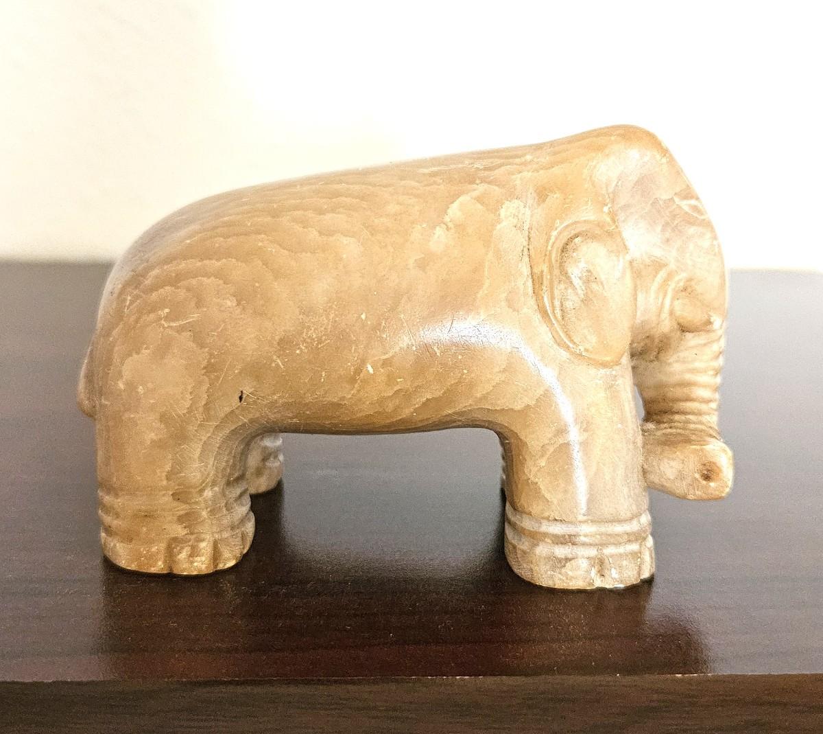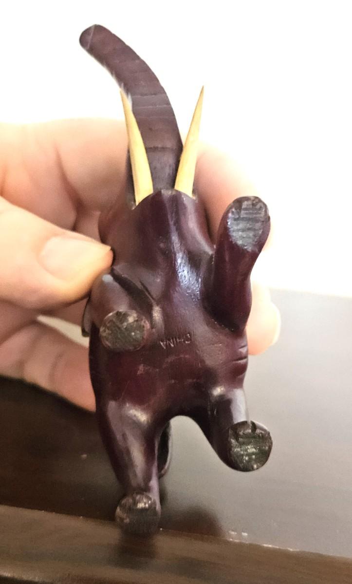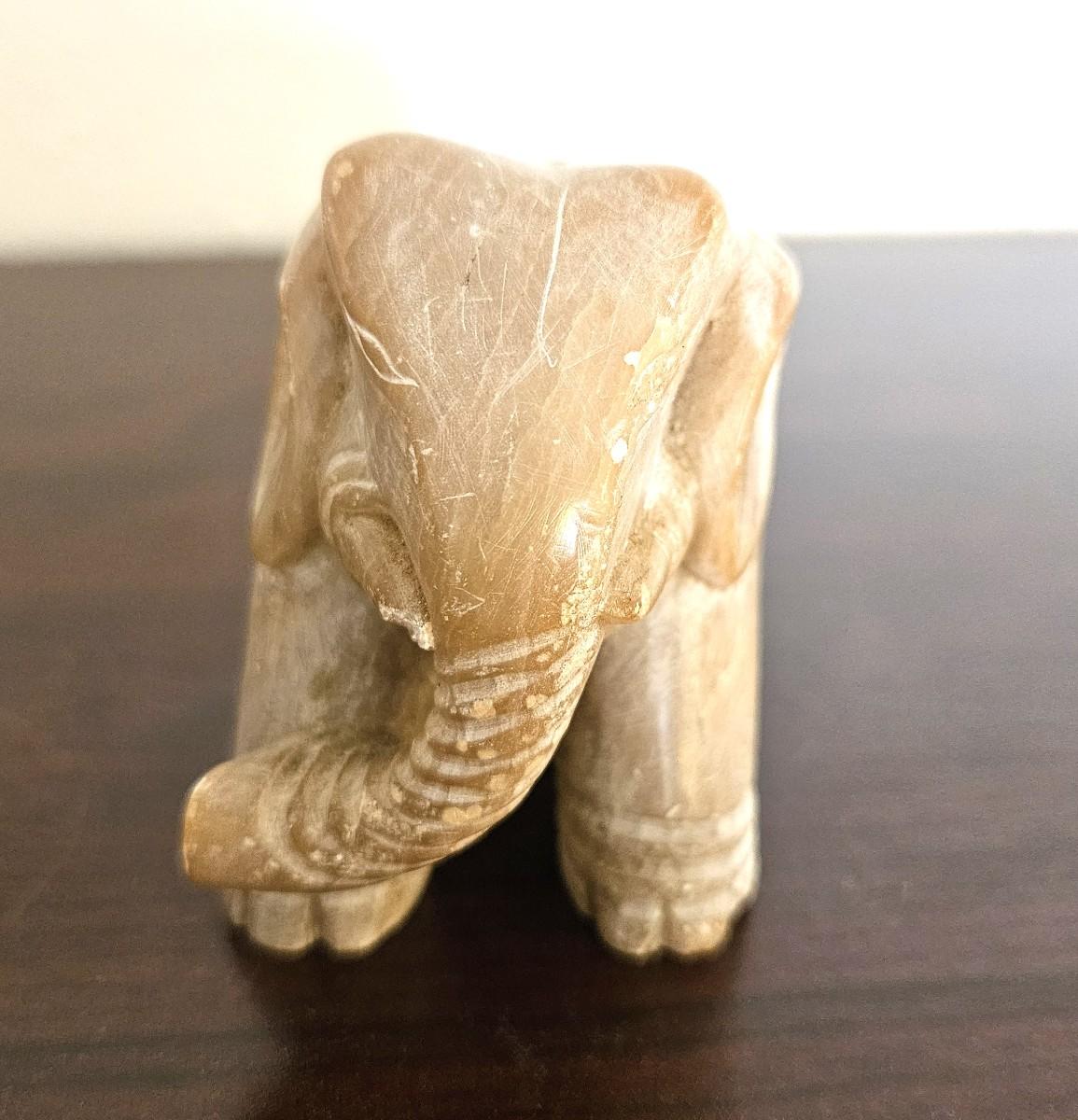 4} Vintage Hand Carved Wooden Elephant with Ivory Tusks