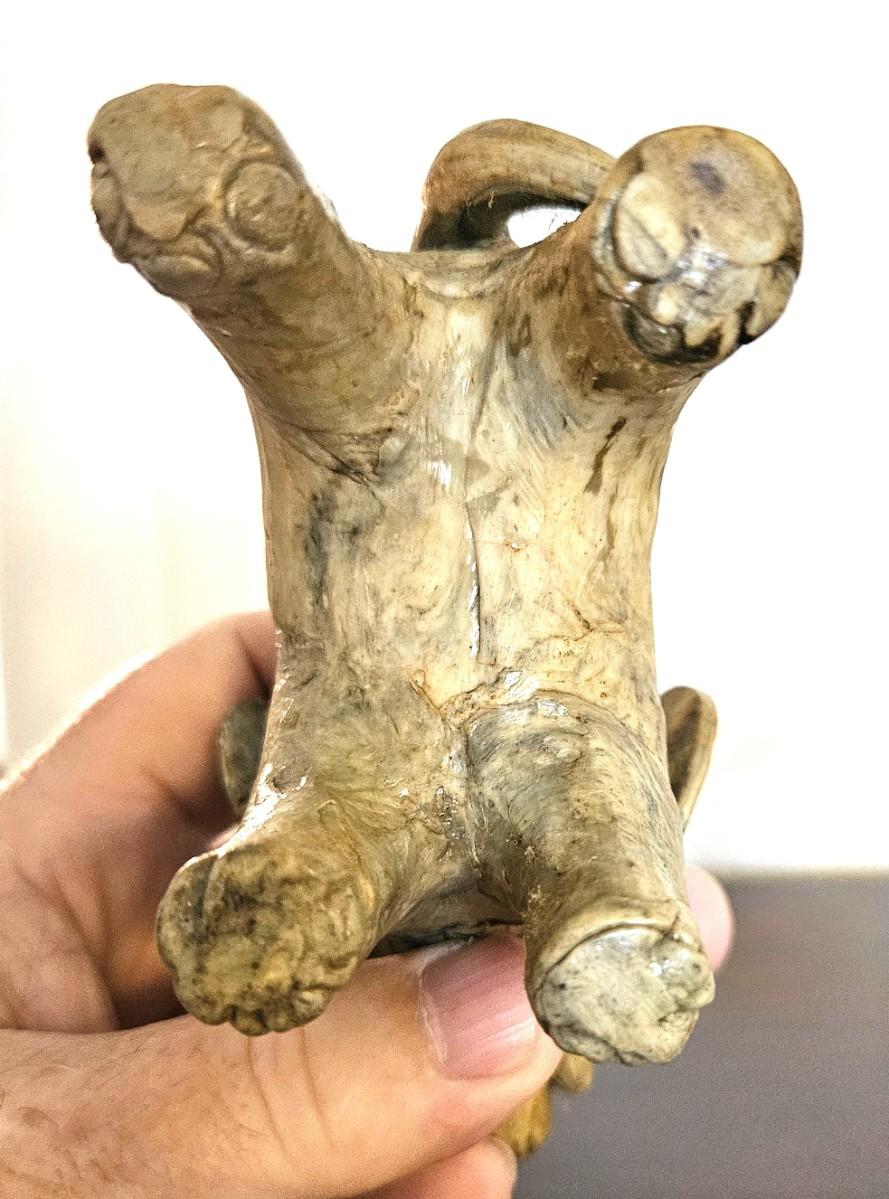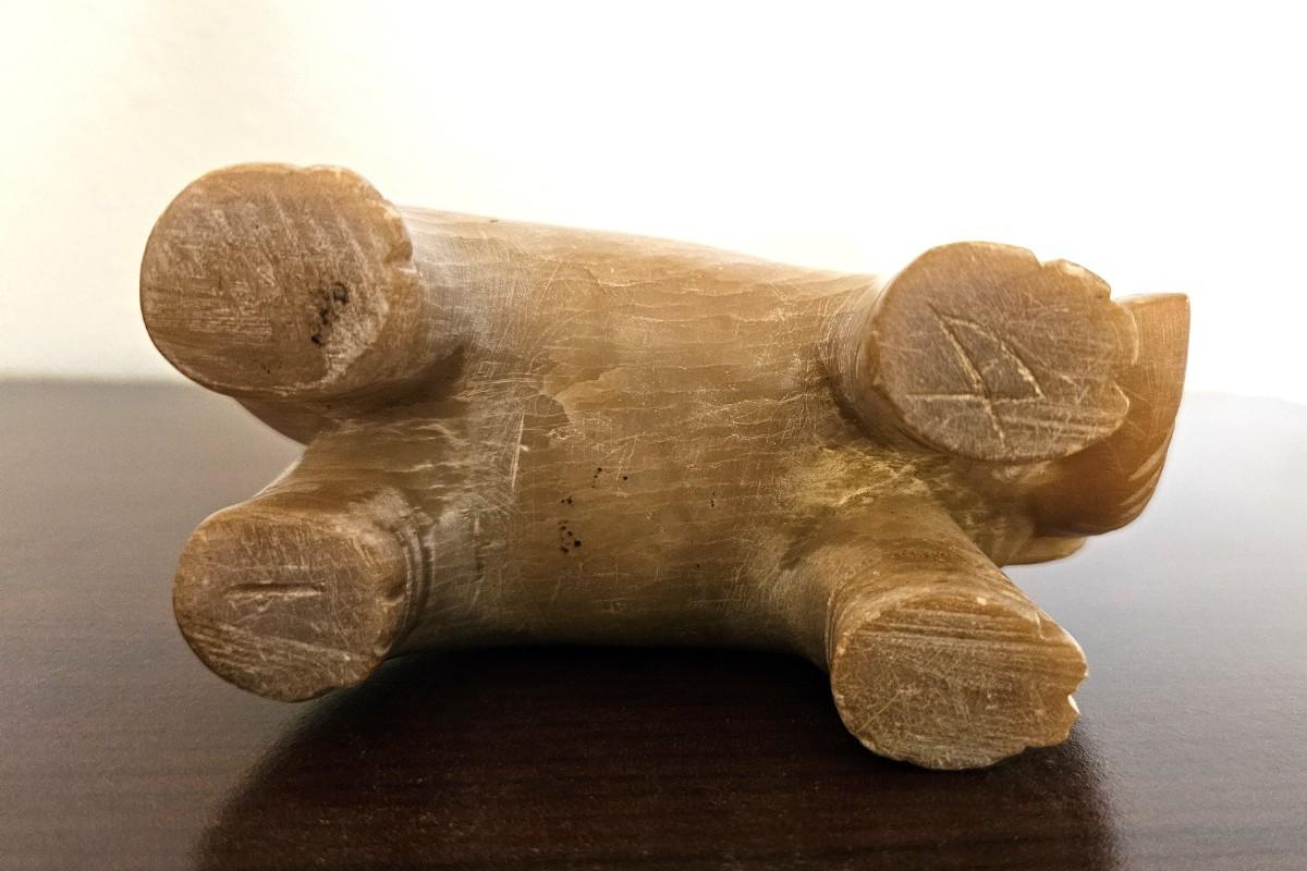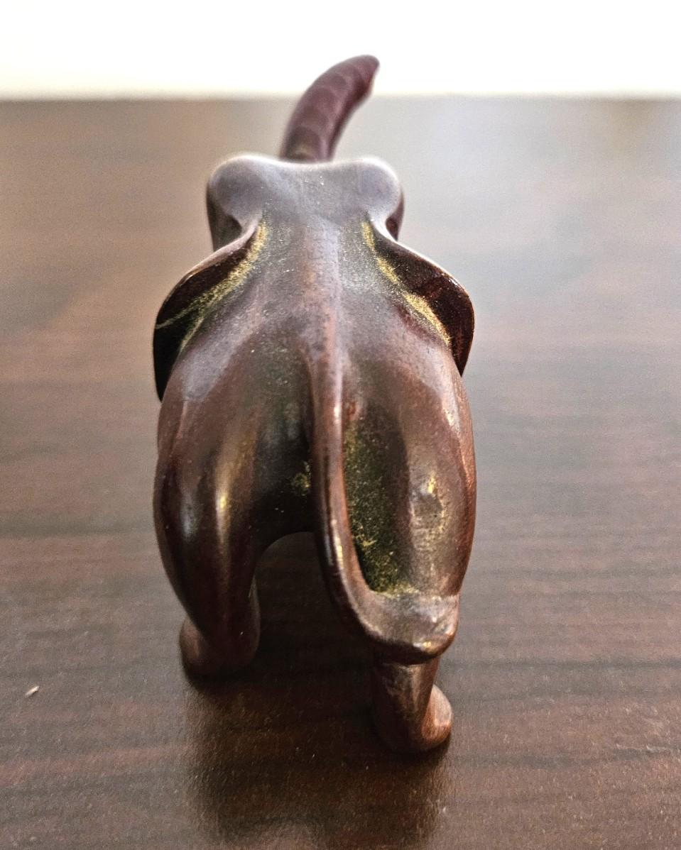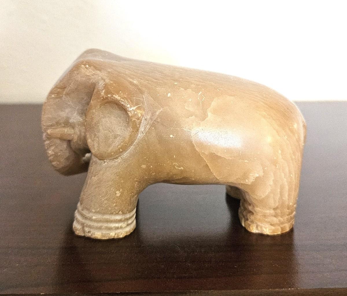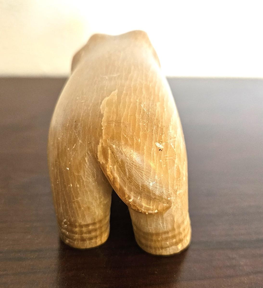 4} Vintage Hand Carved Wooden Elephant with Ivory Tusks