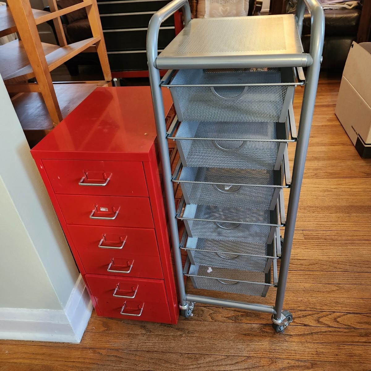 6 Drawer metal Cabinet on Casters and 6 Pull out Basket Storage Rack