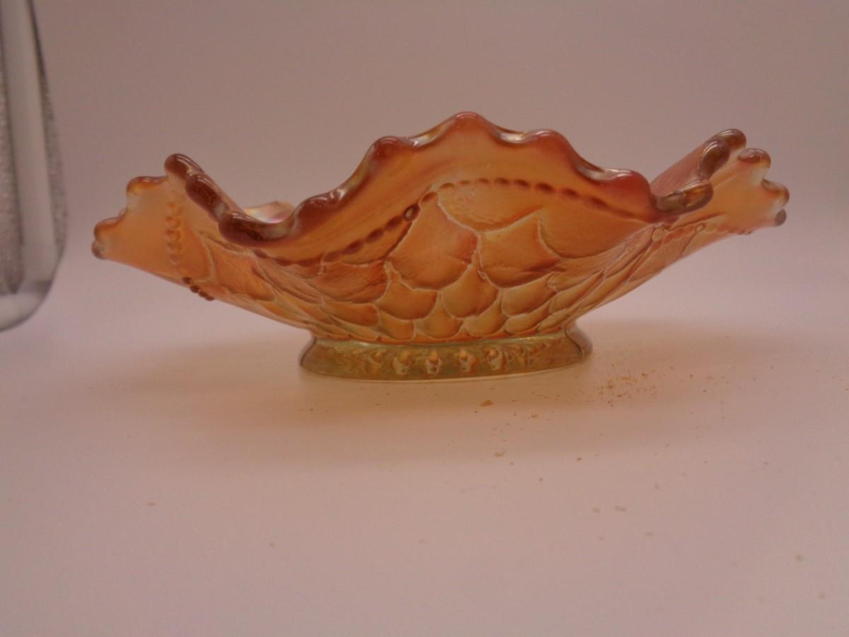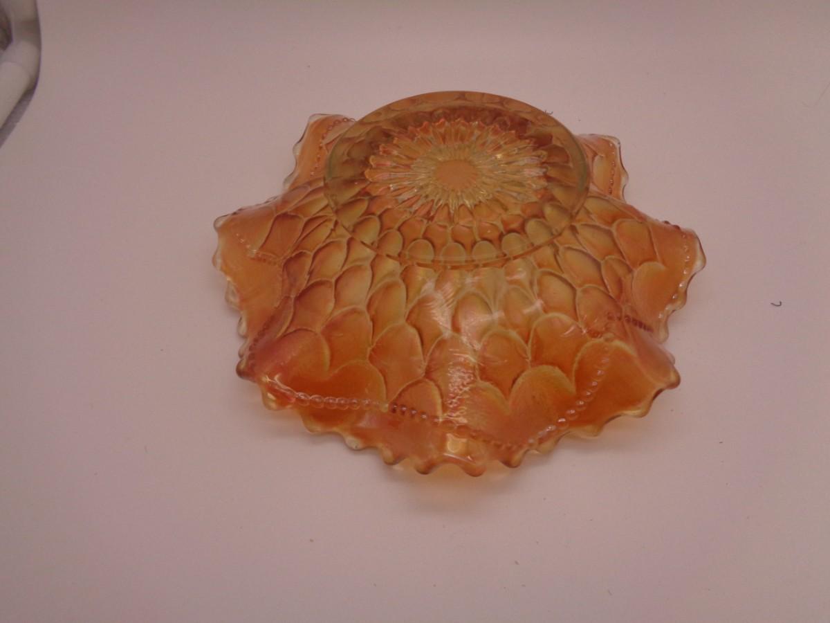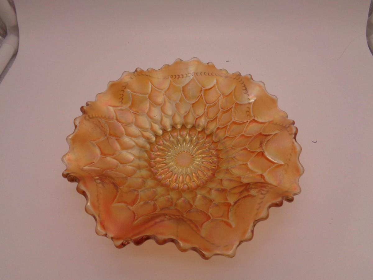 6" Dugan "Fish Scales" Marigold Carnival Glass Dish #2