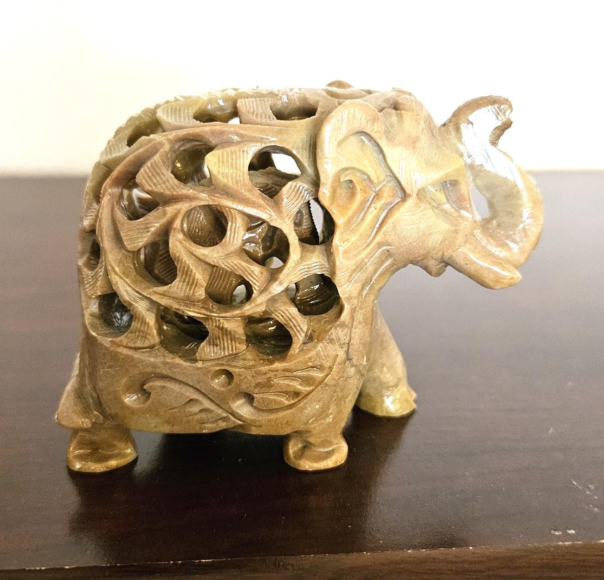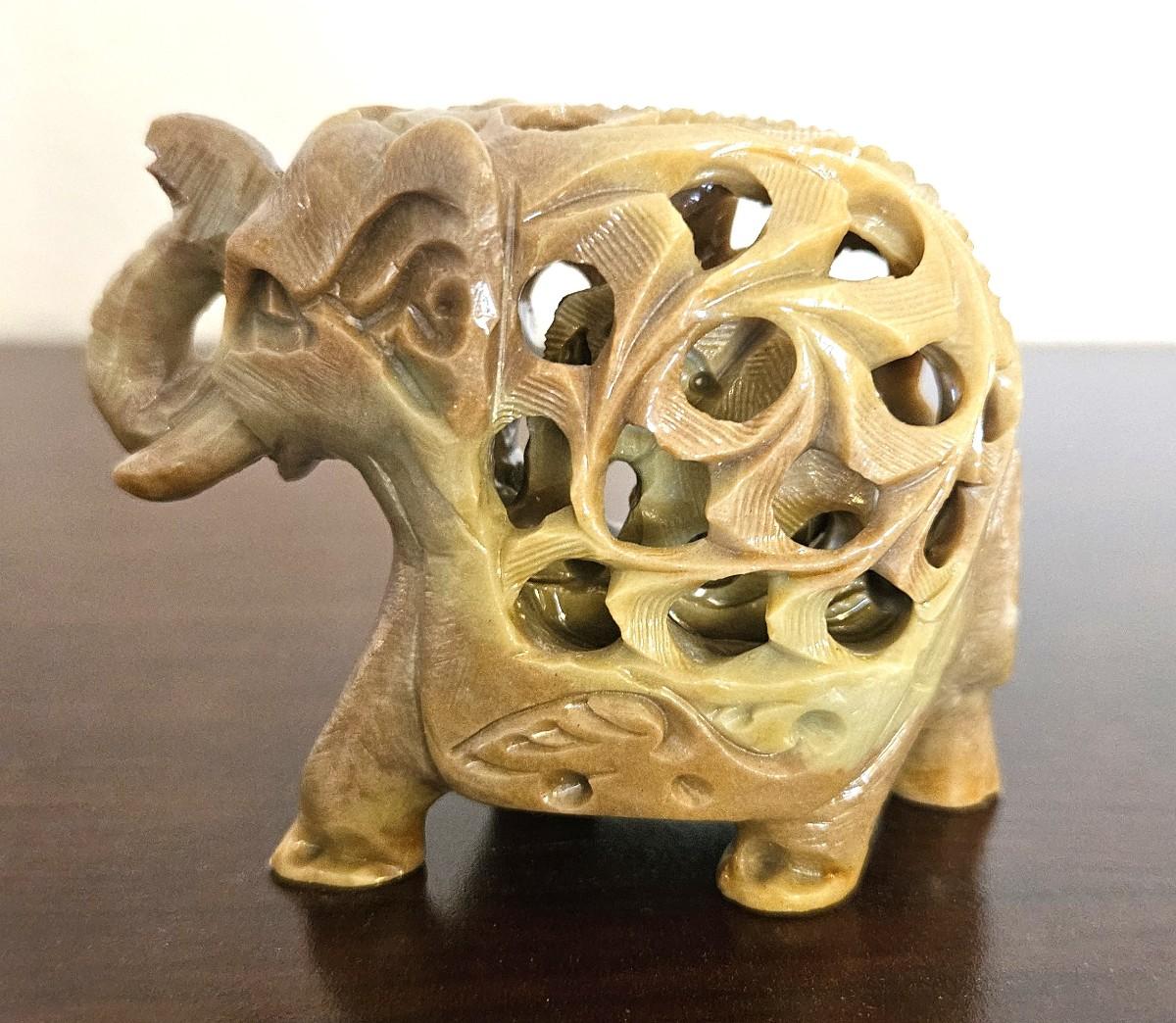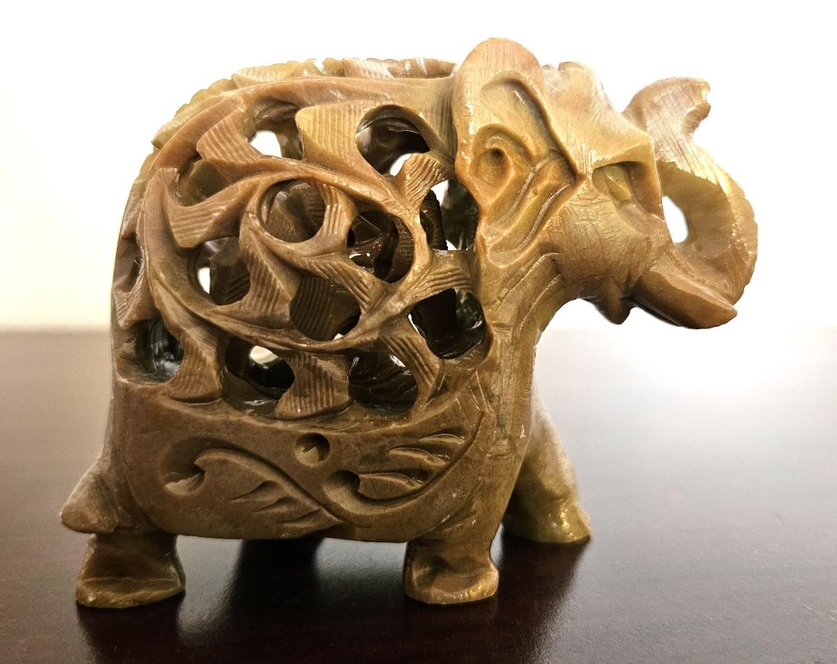 5} Vintage Hand Carved Steatite Elephant