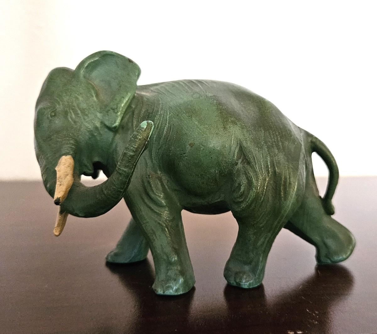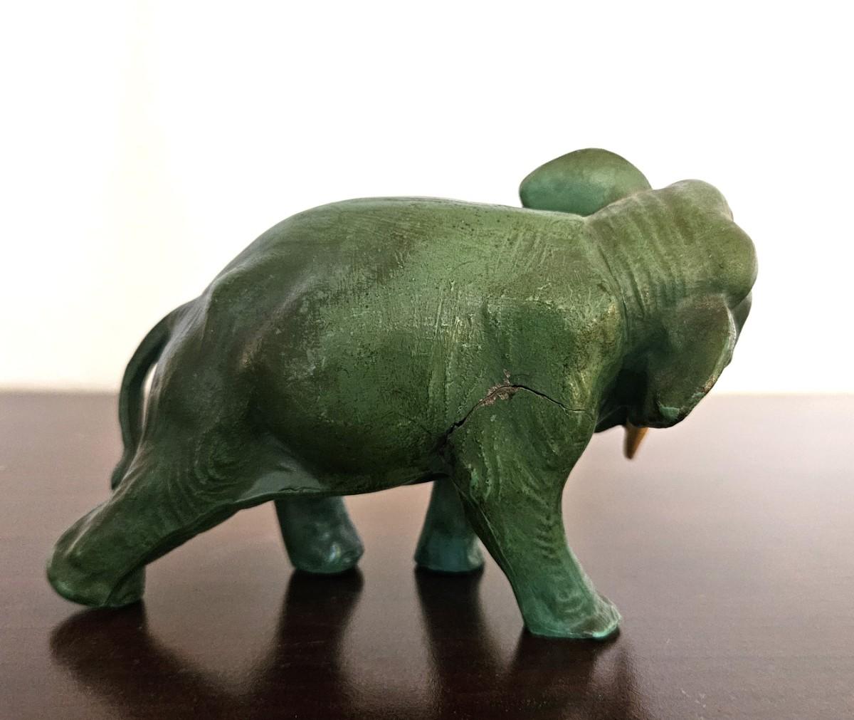 6} Green Spelter Elephant - has small crack- see photos