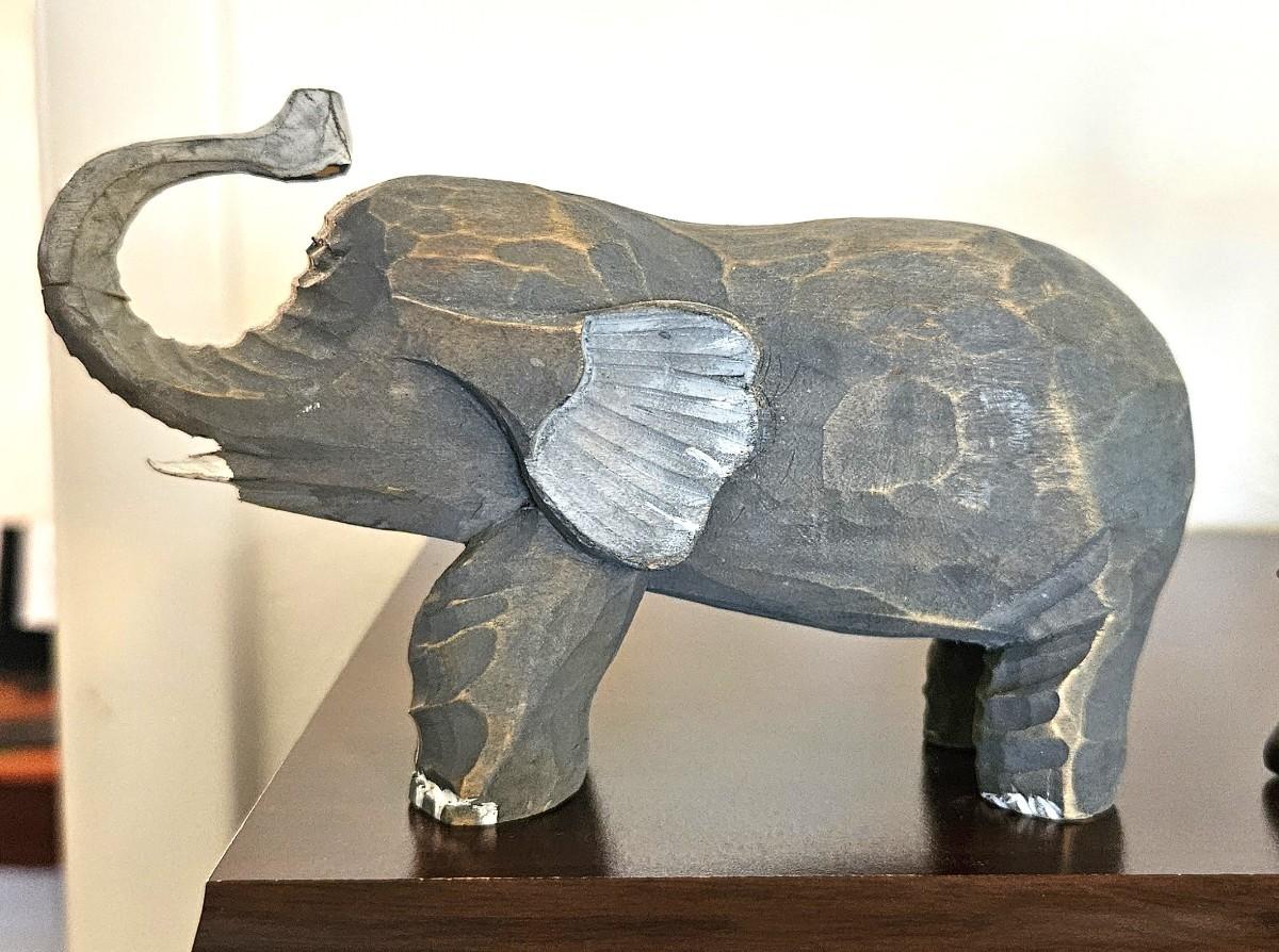1} Hand Carved Wooden Elephant