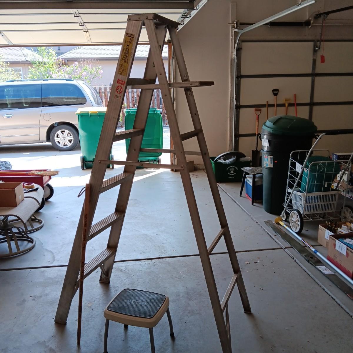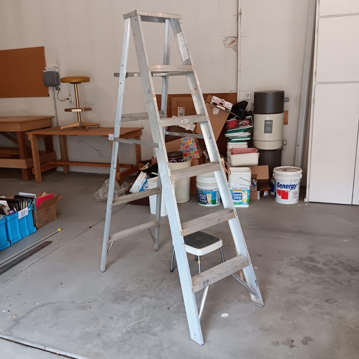 6 FOOT ALUMINUM LADDER AND A STEP STOOL