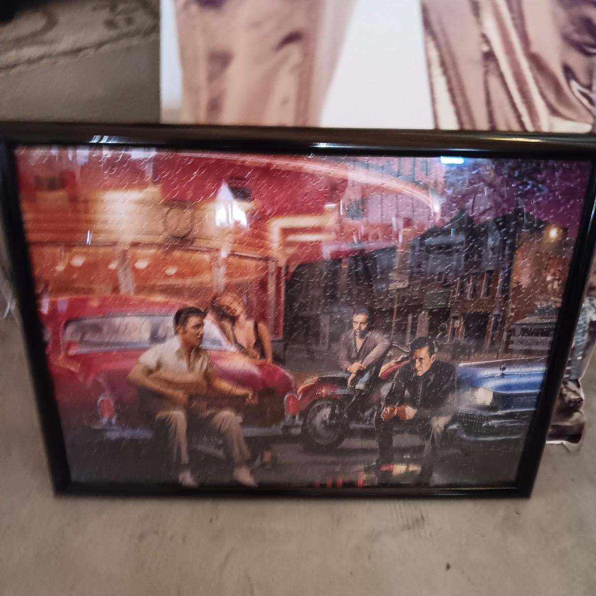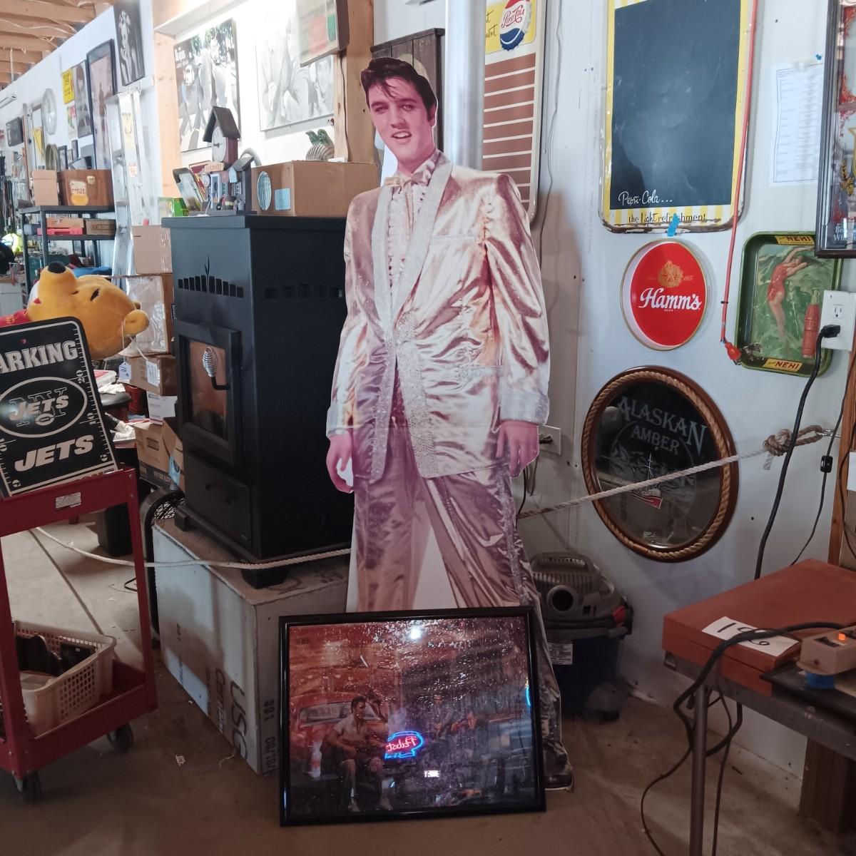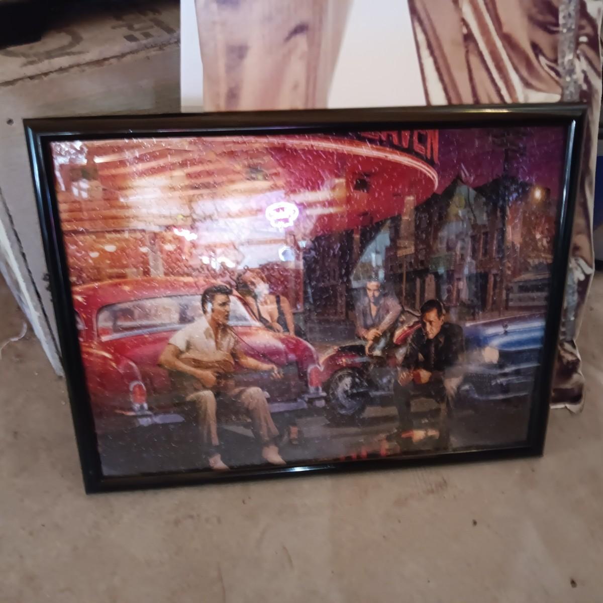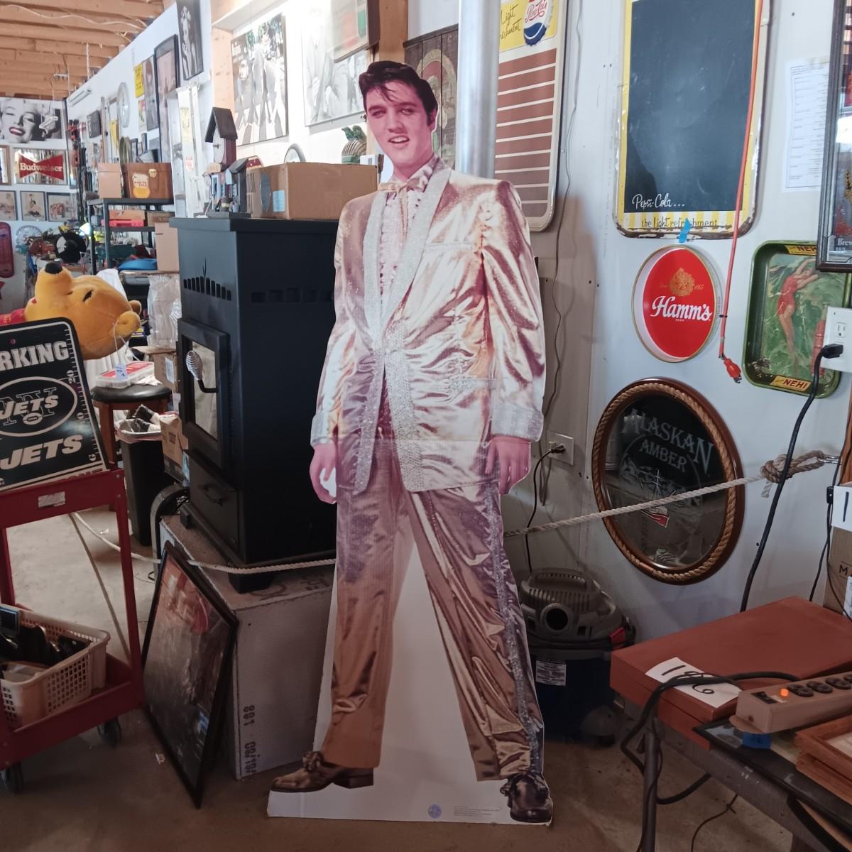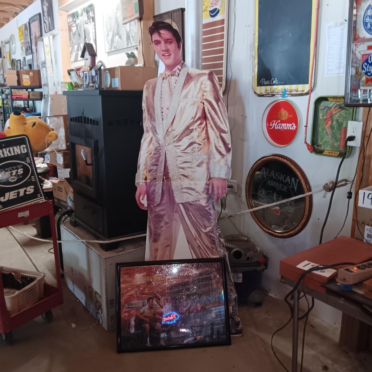 6 FOOT CARDBOARD FREE STANDING ELVIS PRESLEY AND A FRAMED ELVIS JIGSAW PUZZLE