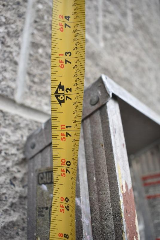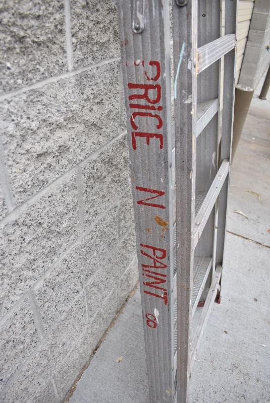 6 Foot Tall Metal Ladder, Says "Price N Paint" on the side