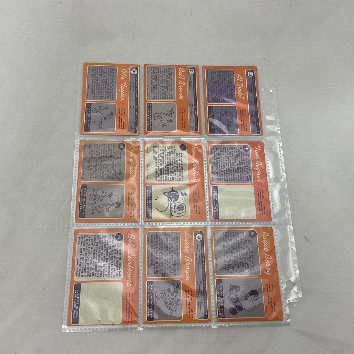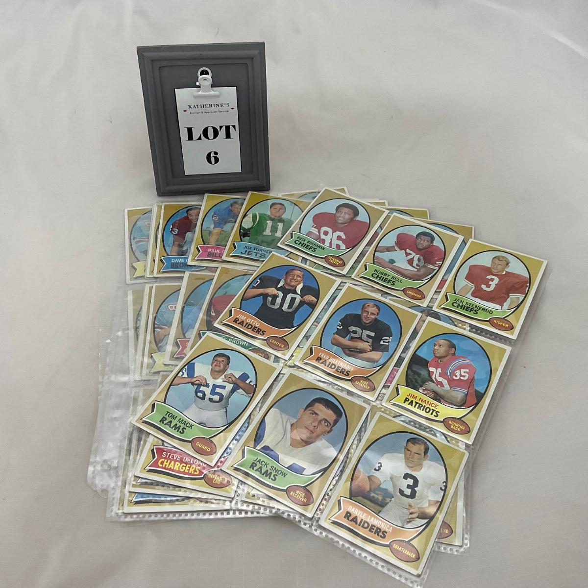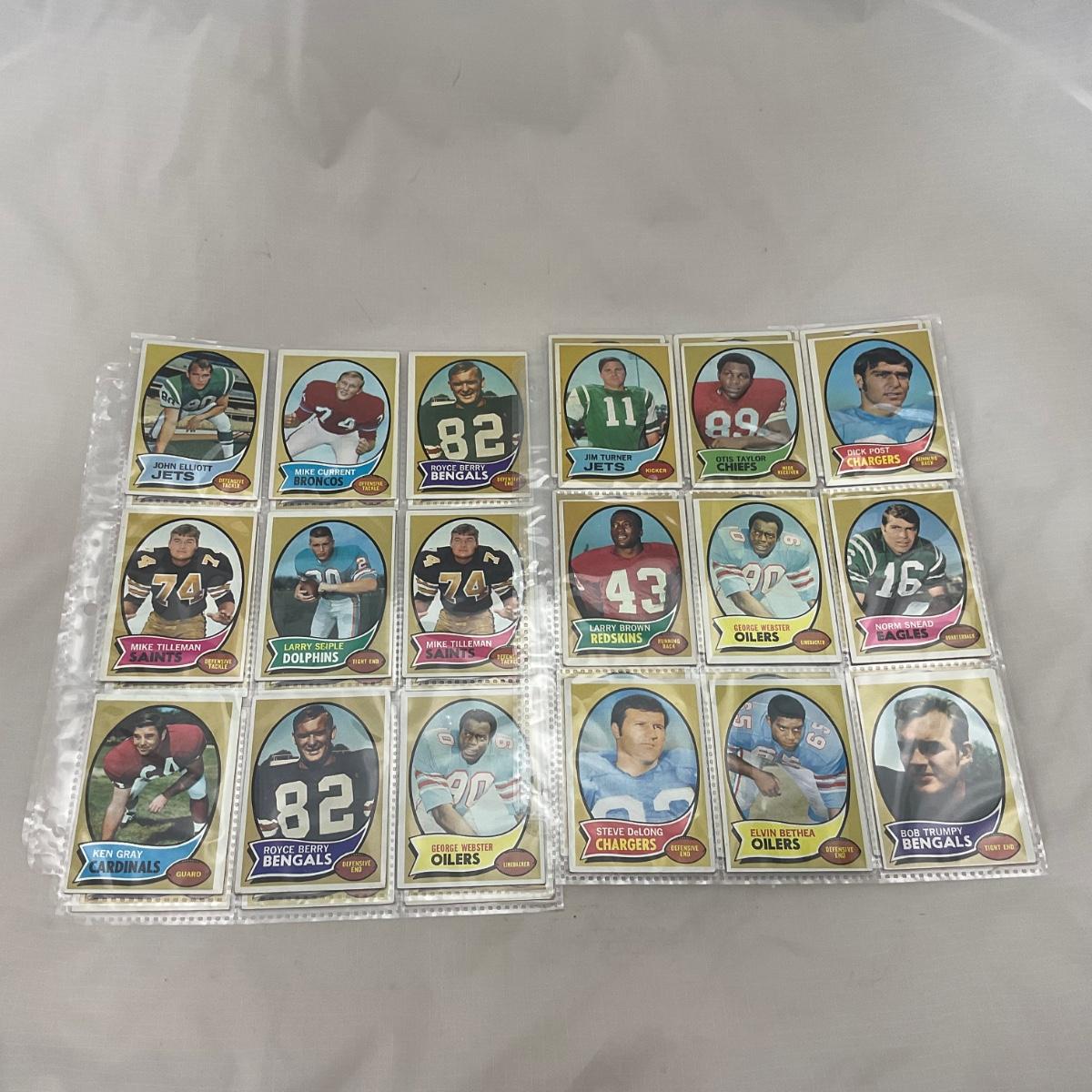 Collection of 1970 vintage football cards. Seven pages of cards. There does seem to be some imperfections on some of the cards, as pictured. The seven pages of cards will come with a binder to transport. Please see photos for details and condition. ::: Shipping is available on this lot. If you require shipping you must let us know at the close of the auction. We will coordinate with you after the item has been won. Shipping fees will include insurance up to or exceeding the value of all items being mailed. If you have any questions regarding this lot please contact the auctioneer either via this website, by direct email or by phone. PICK UP TIMES and other important information can be found in the TERMS and DESCRIPTION of the auction. Please take a look for pertinent information. Thanks!
