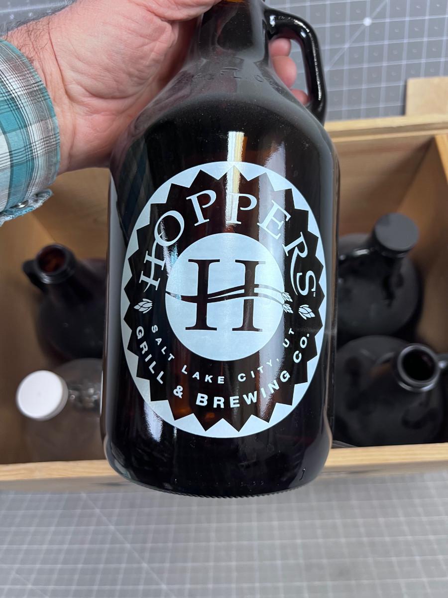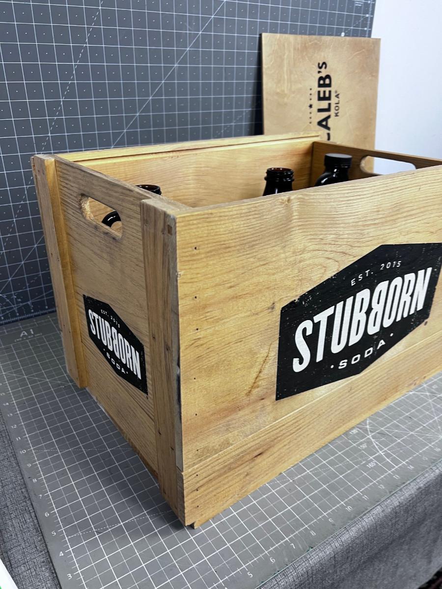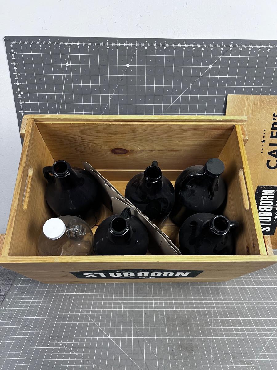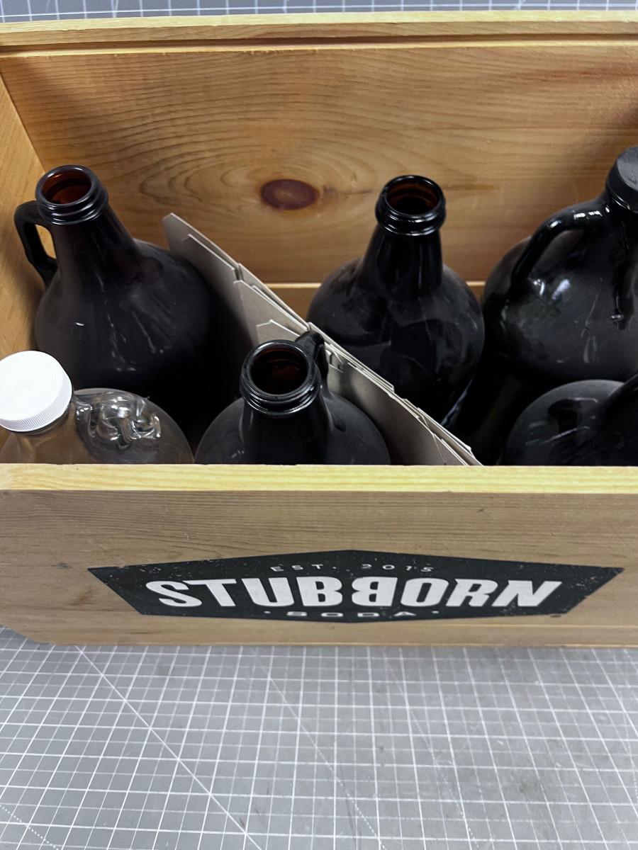 6 GLASS 1/2 BEER Bottles in a Wooden Crate
