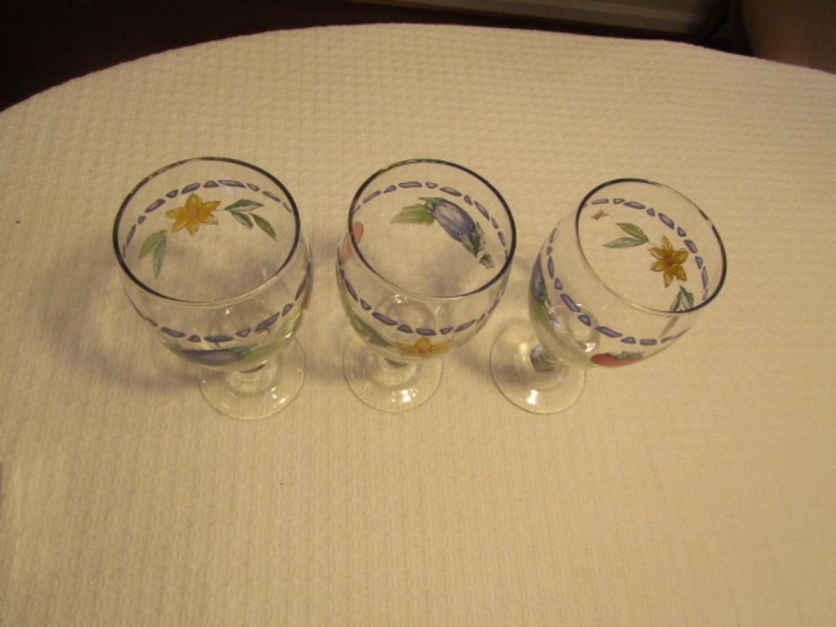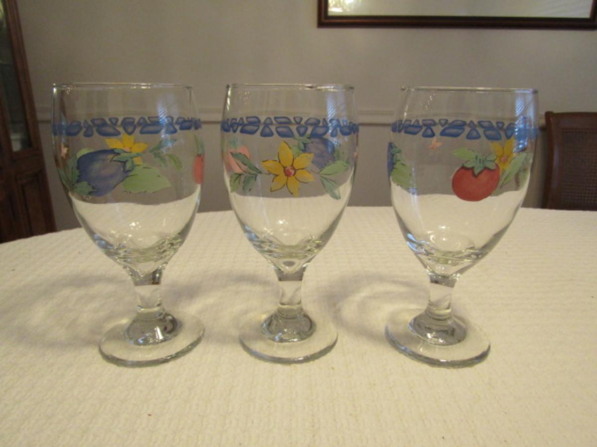 6 Glass Goblets- Pfaltzgraff Summer Garden Pattern